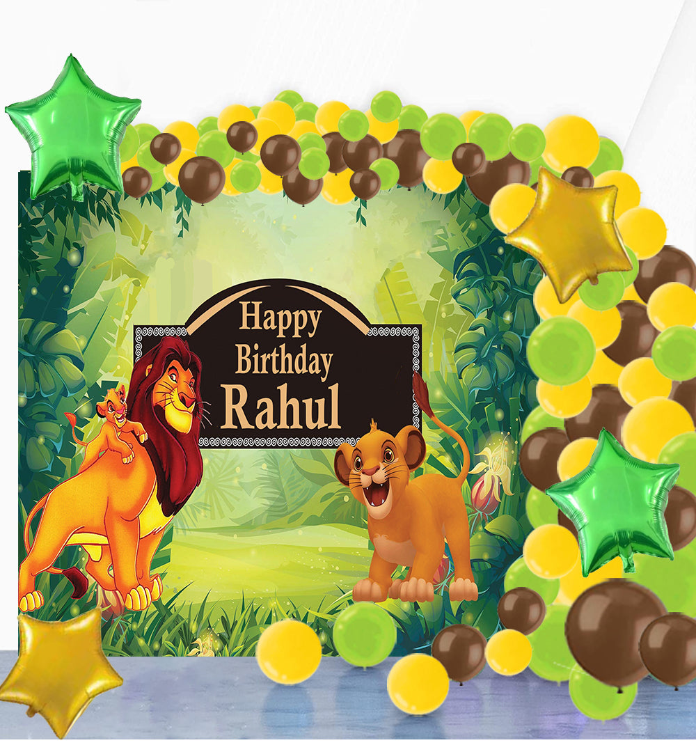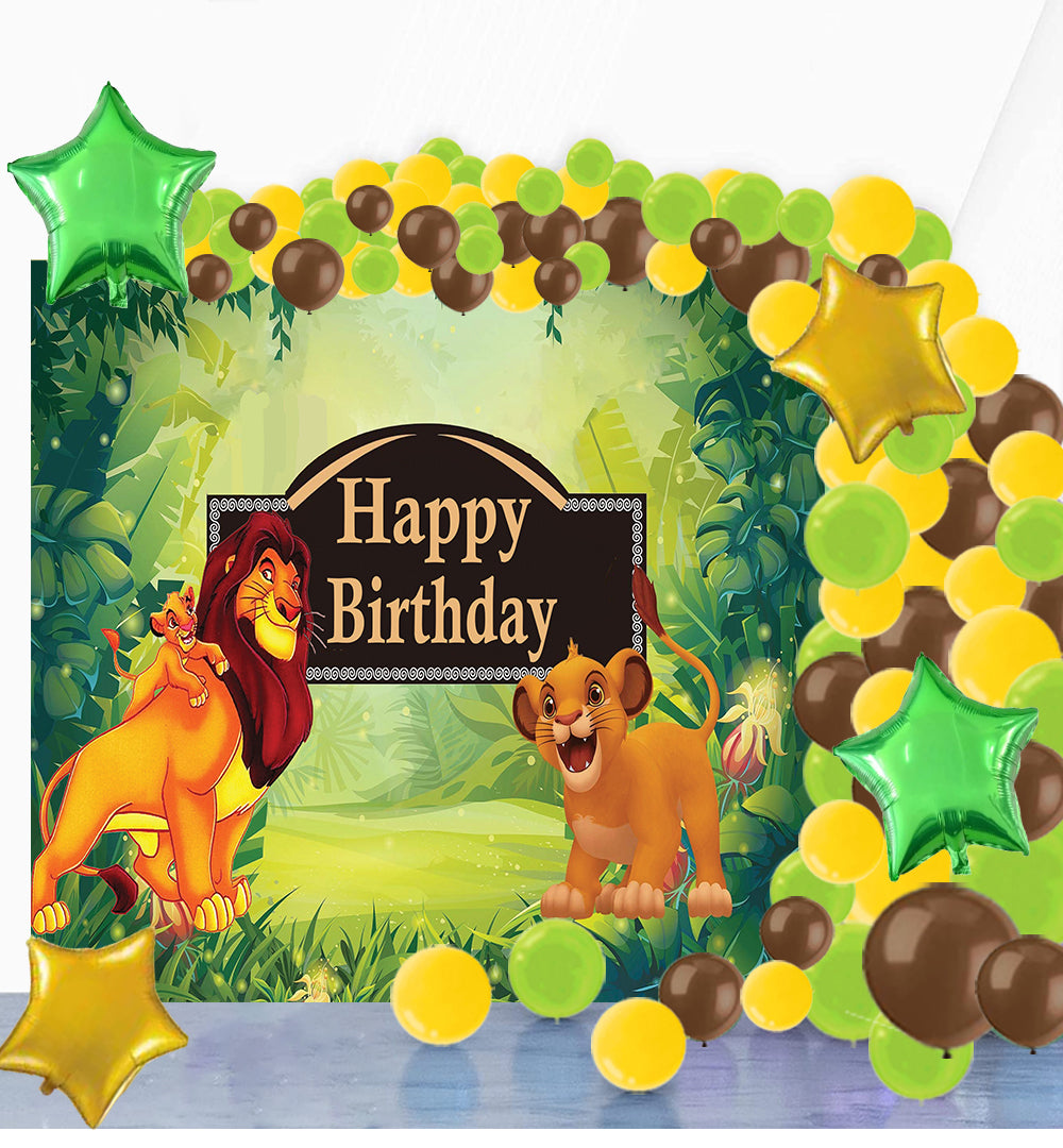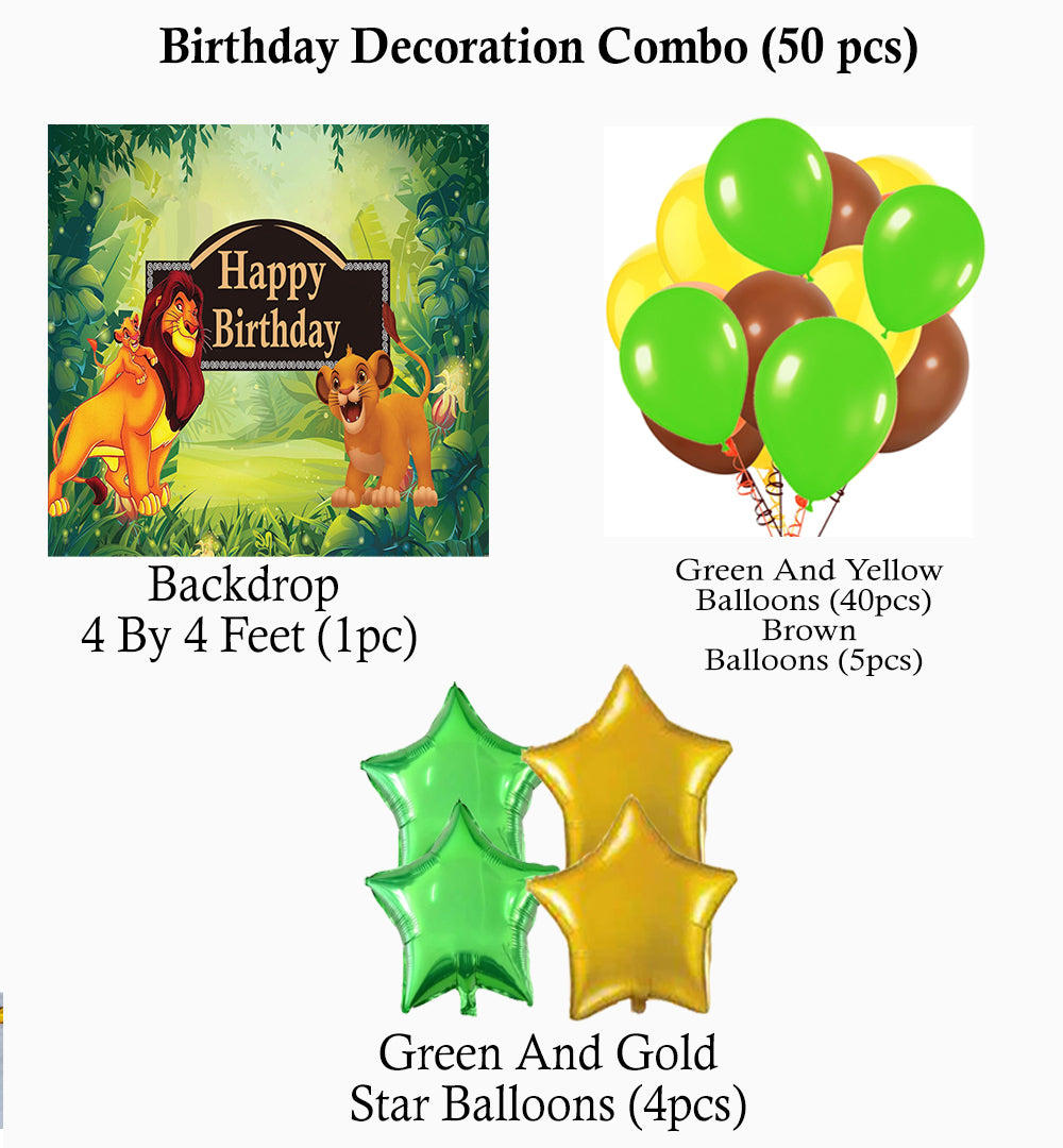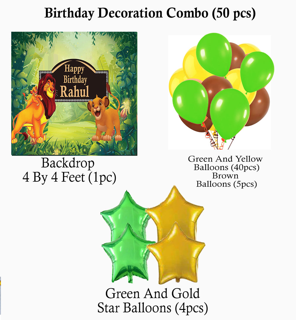 - PACKAGE: The decorations set includes: 4ft x 4ft backdrop banner made of high quality star flex, 40 Latex Balloons Green and Yellow, 5 pcs Brown Balloons, 4 pcs Gold and Green Star Balloons.