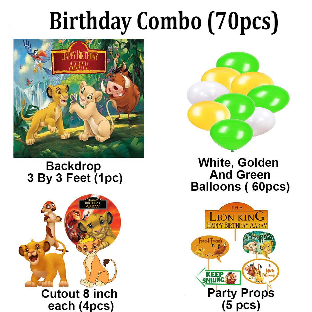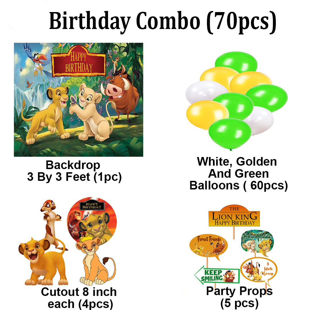 - Package Includes -, Backdrop - 3 by 3 ft, 60 pc Latex balloons (Gold, Green and White) and 4 paper Cutouts and 5 props.
