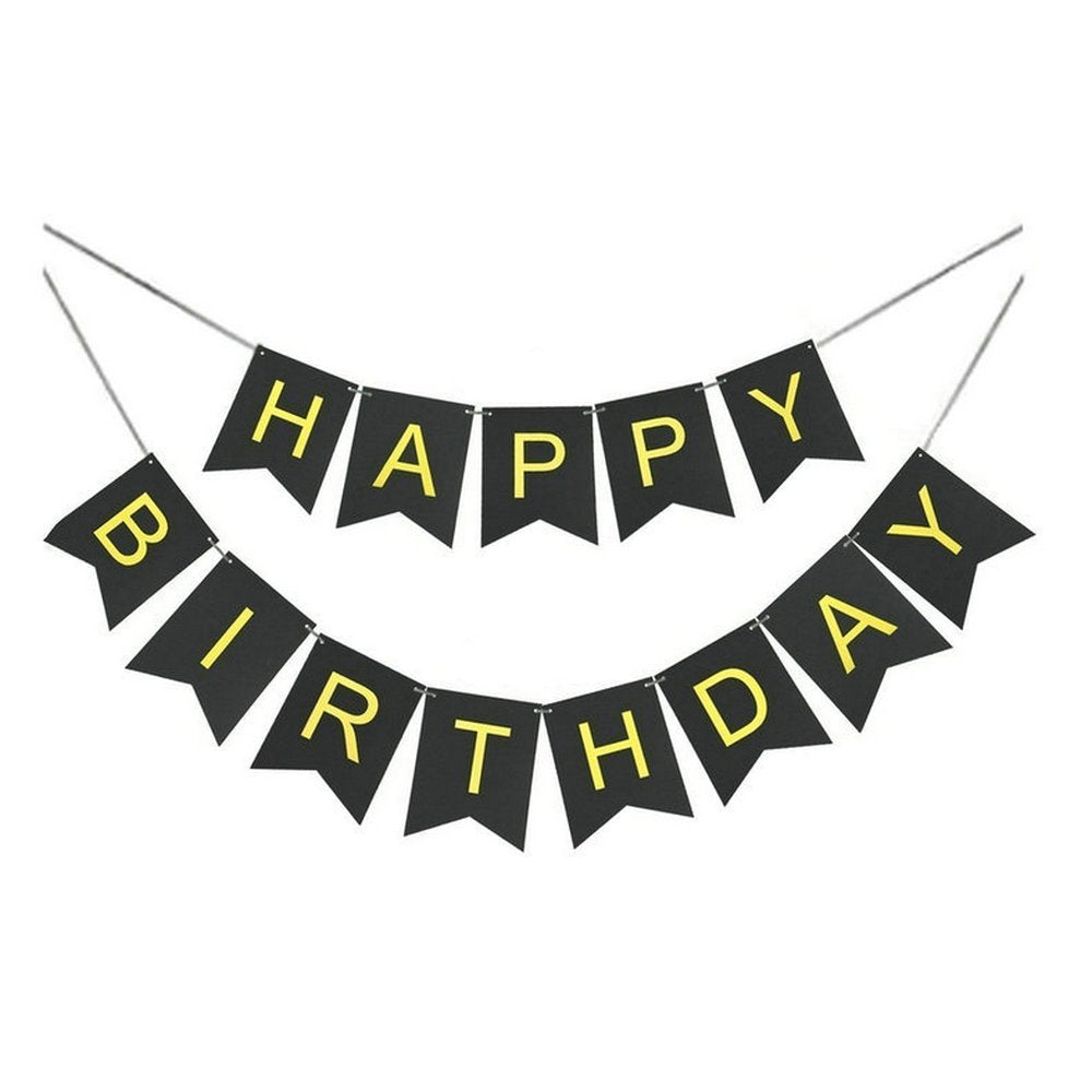 - What you get – this black and gold happy birthday decoration set includes a “happy birthday” banner, 2 pieces gold paper pom poms - 12 inch, 2 white pom pom - 10 inch, 2 black pom pom - 12 inch, 4 pieces paper lanterns - 12 inch each - gold and white and 2 pack of gold foil fringe curtain - 6ft x 3ft each