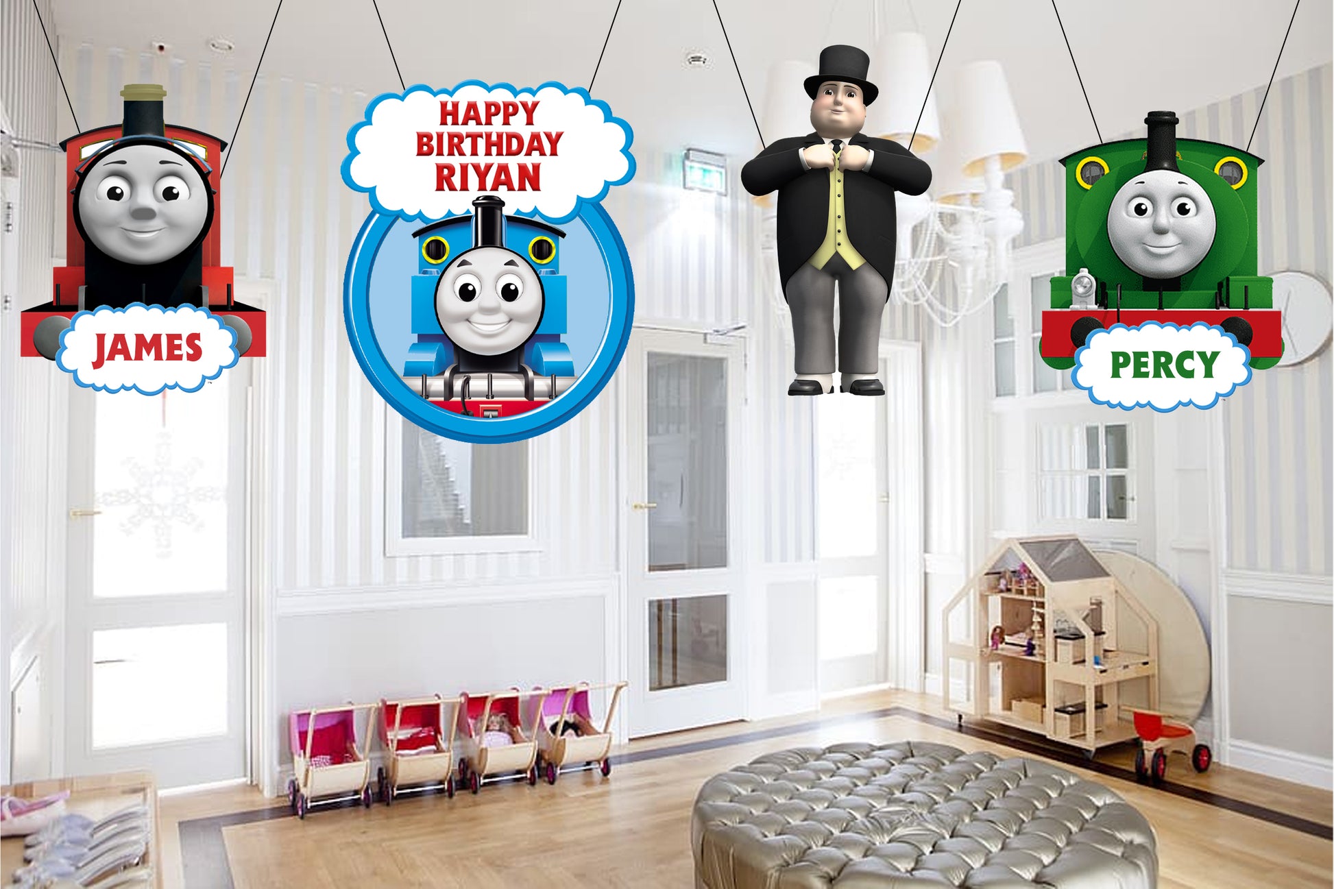 - Thomas & Friends Theme hangings will add a beautiful touch to your kid's birthday party.