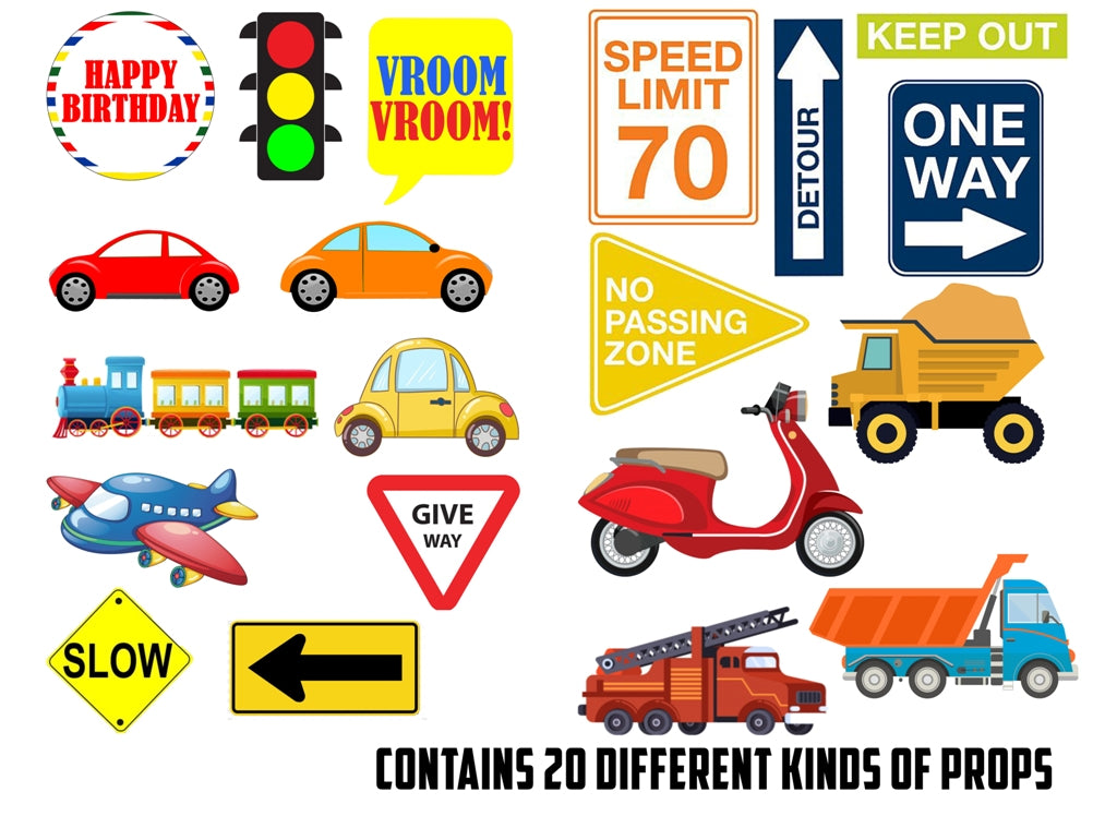 - Material: - Transport Theme photo booth props are printed on thick cardstock paper.