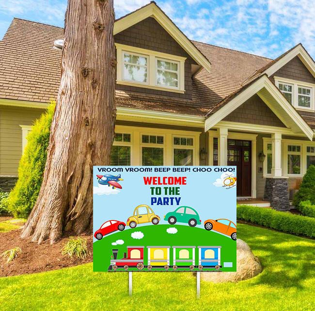 Transport welcome sign is made of high quality vinyl print with pasted on 3mm sun board making it ideal for any home or any outside space. Utilize this little welcome sign for long haul or transitory presentation. These cut out can be pasted on the wall with double side tape or stand it with some support. No stand included in the package.
