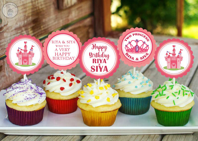 Twin Girls Theme Cup Cake Topper specially designed with three different designs.