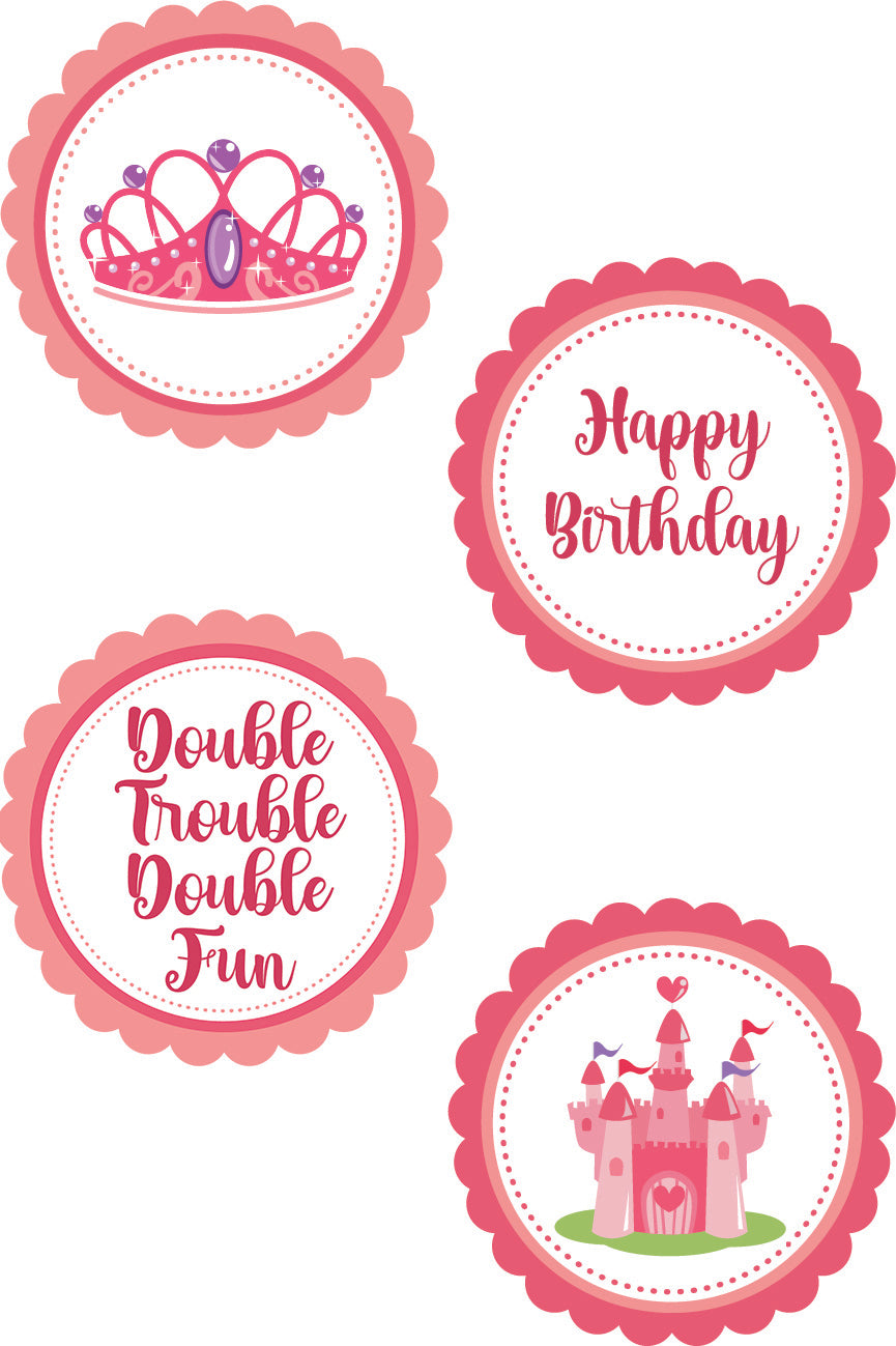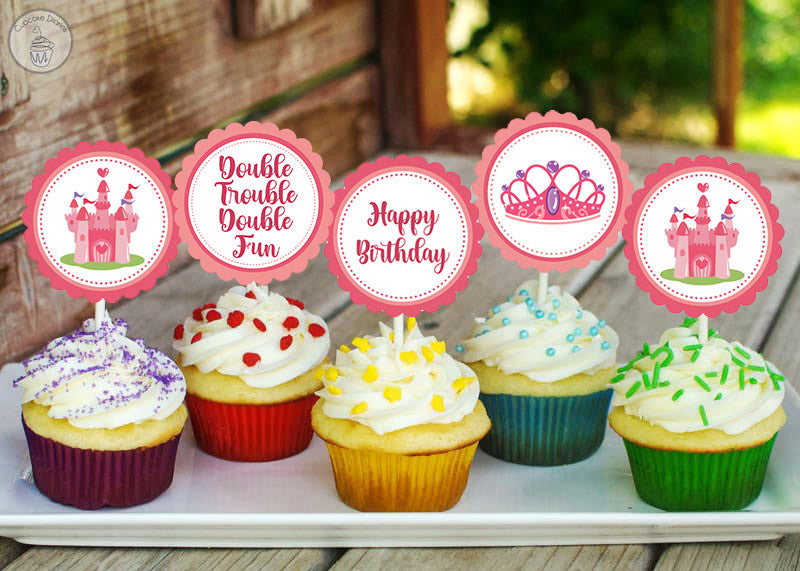 Twin Girls Theme Birthday Party Cupcake Toppers for Decoration