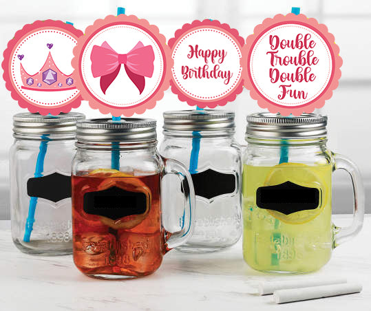 - Twin Girls straw decor will add a touch of style to your birthday party tables. Straw decor will also look great at your beverage table.