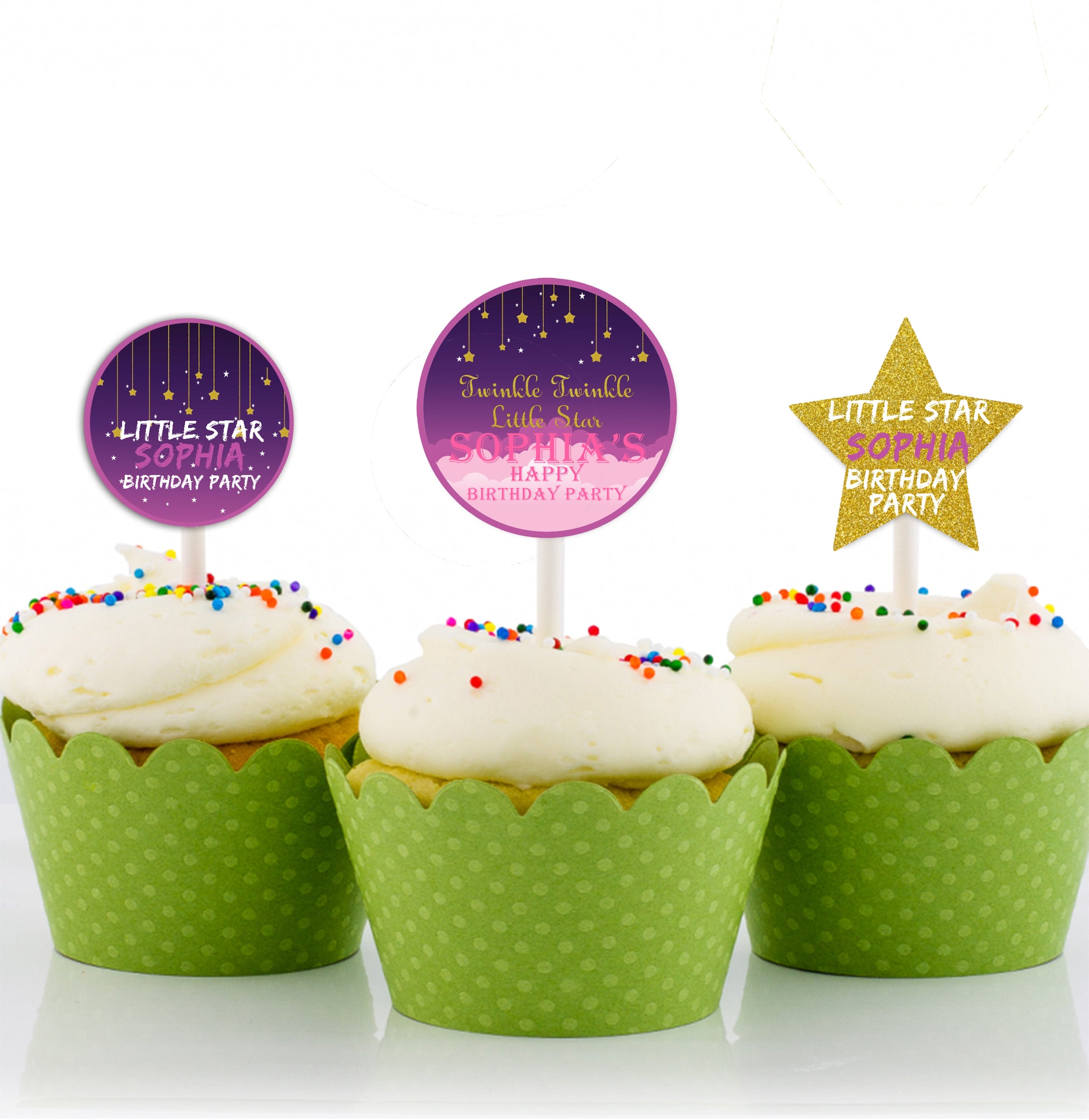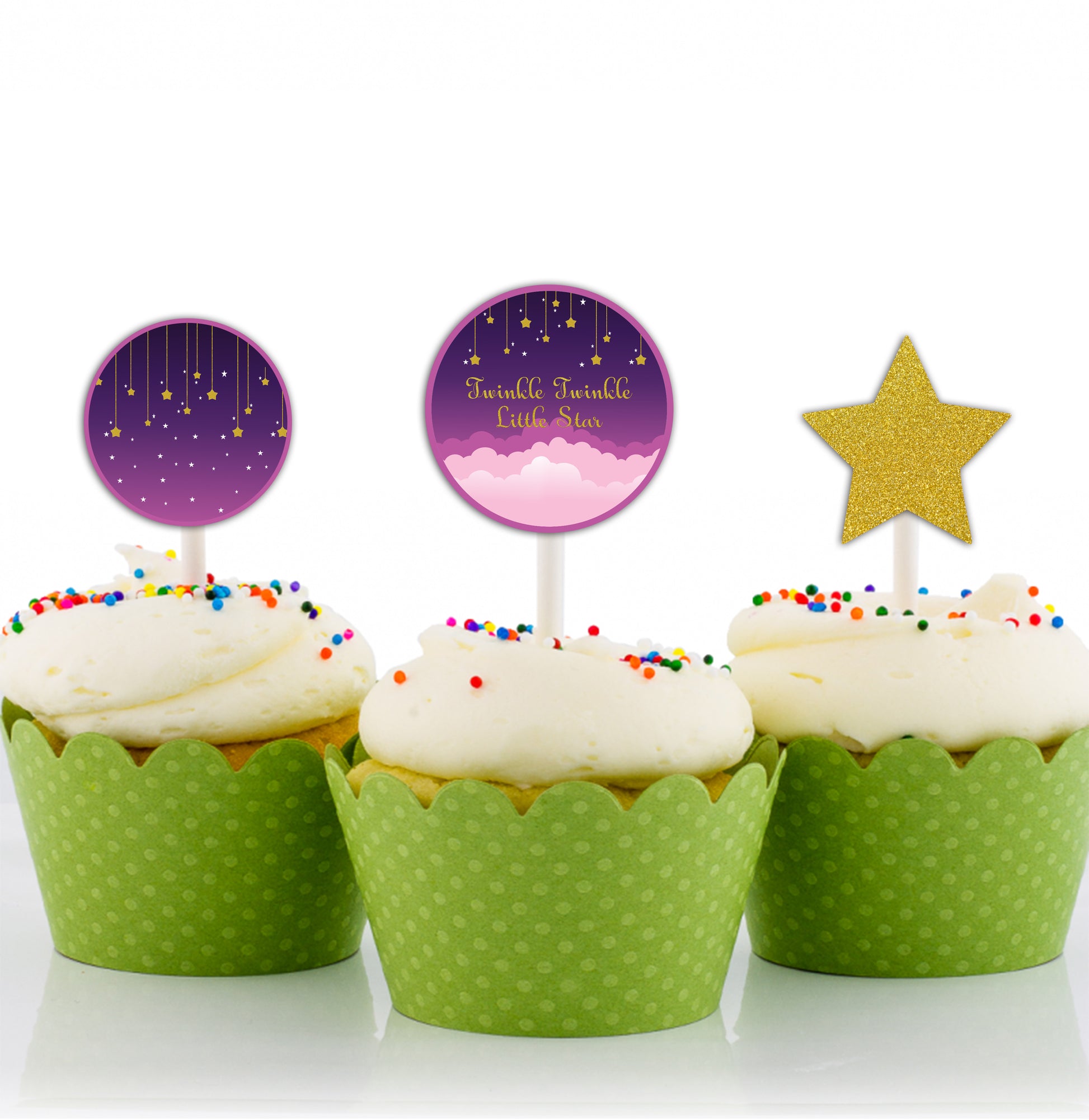 Twinkle Twinkle Little Star Theme Birthday Party Cupcake Toppers for Decoration