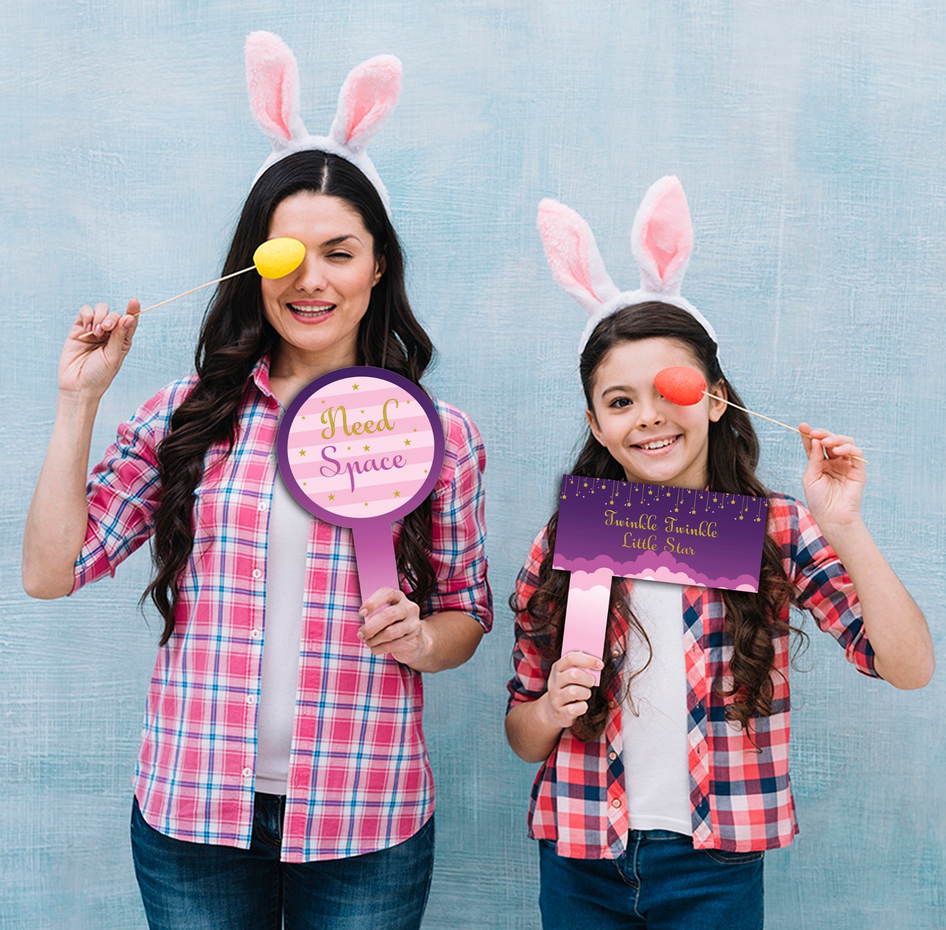 - Size - Photo Booth available in three variant sizes, Round Props: 6" x 9.5", Rectangle Props: are 7" x 7".