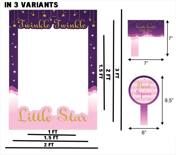 Twinkle Twinkle Little Star Girls Theme Birthday Party Selfie Photo Booth Frame & Props