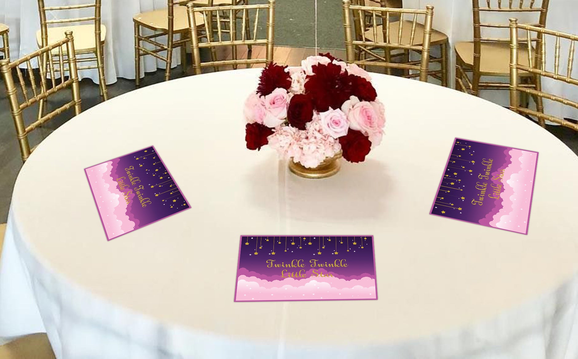 - Twinkle Twinkle Little Star theme birthday party table mats will delight all of your guests. Add these themed table mats to make a remarkable table setting.