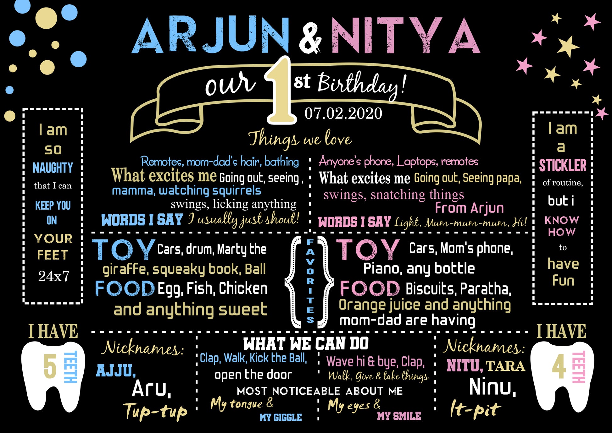 Twins Chalkboard Customized Chalkboard/Milestone Board for Kids Birthday Party