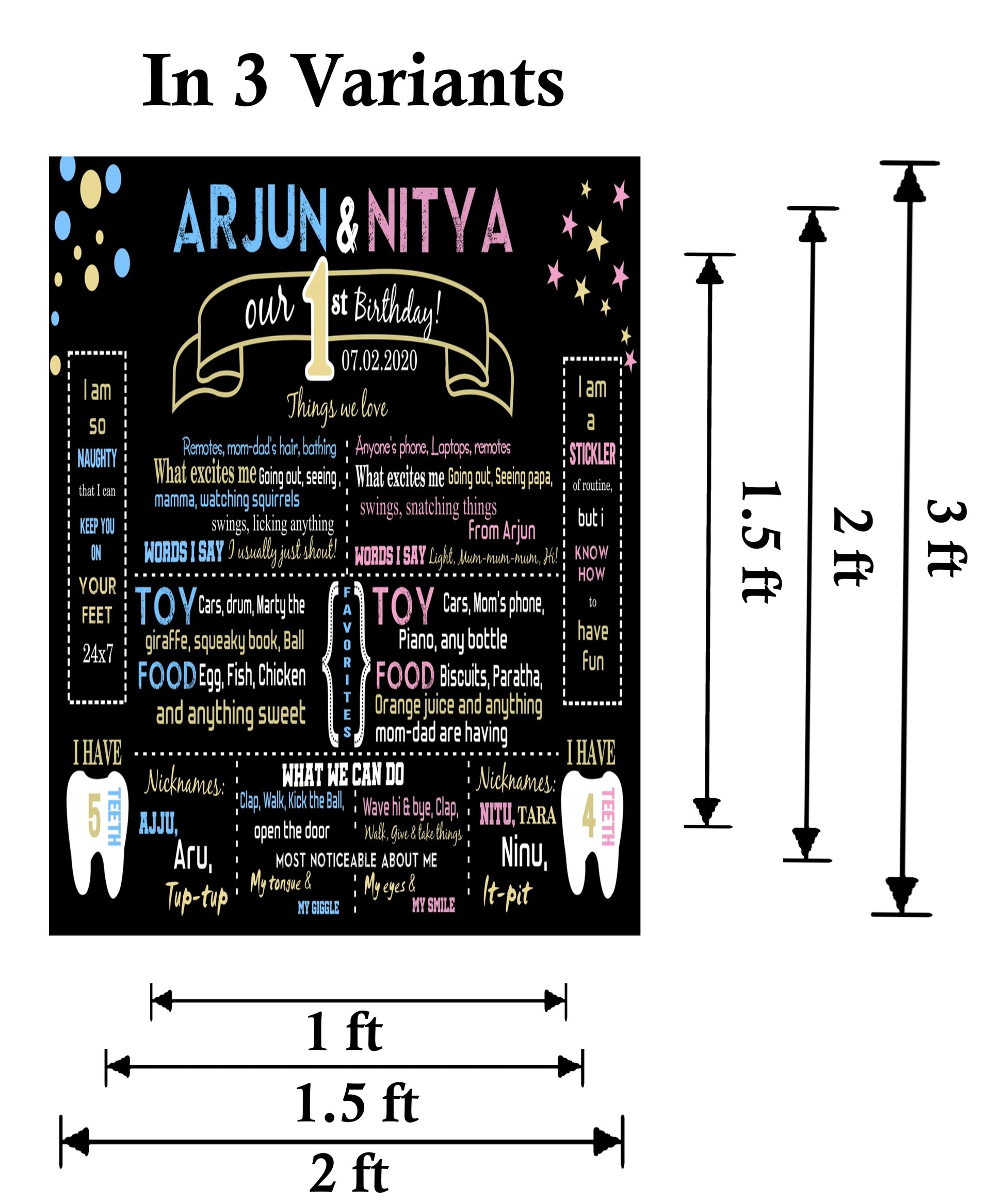 Perfect Size : The birthday chalkboard sign comes in 2 variants which is the perfect to hold and customize child details. Enough space to write details like name, age, weight, height, favorite toys and food. Choose size according to your requirements.