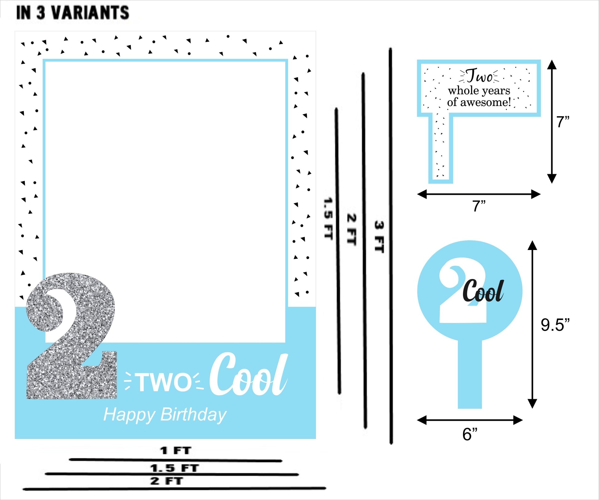 Two Cool Second Birthday Party Selfie Photo Booth Frame & Props
