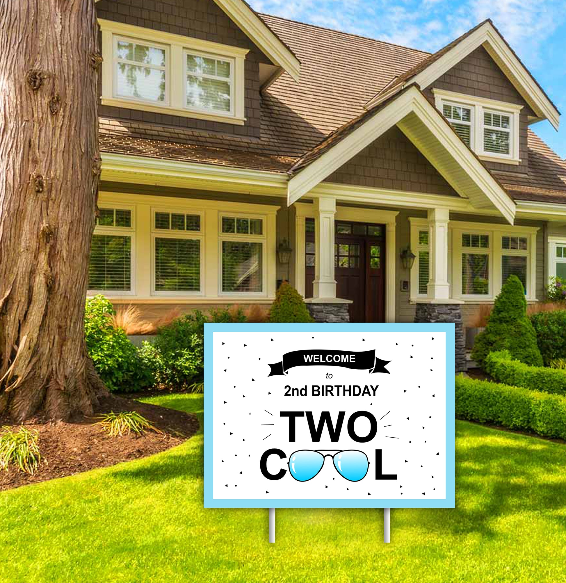 The Two Cool theme Welcome board sign is ideal for any home location or outside space. Welcome your friends and family members with a stunning welcome birthday party board.