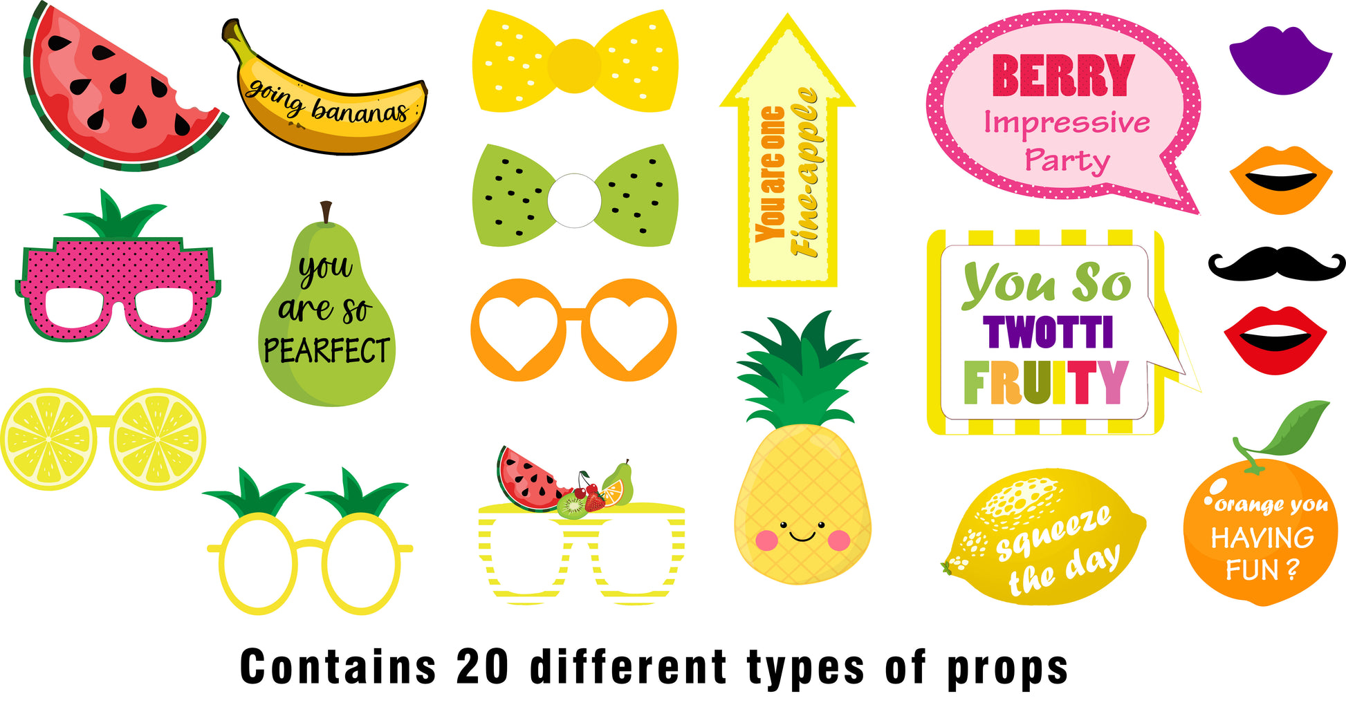 - Material: - Twotti Fruity Theme photo booth props are printed on thick cardstock paper.