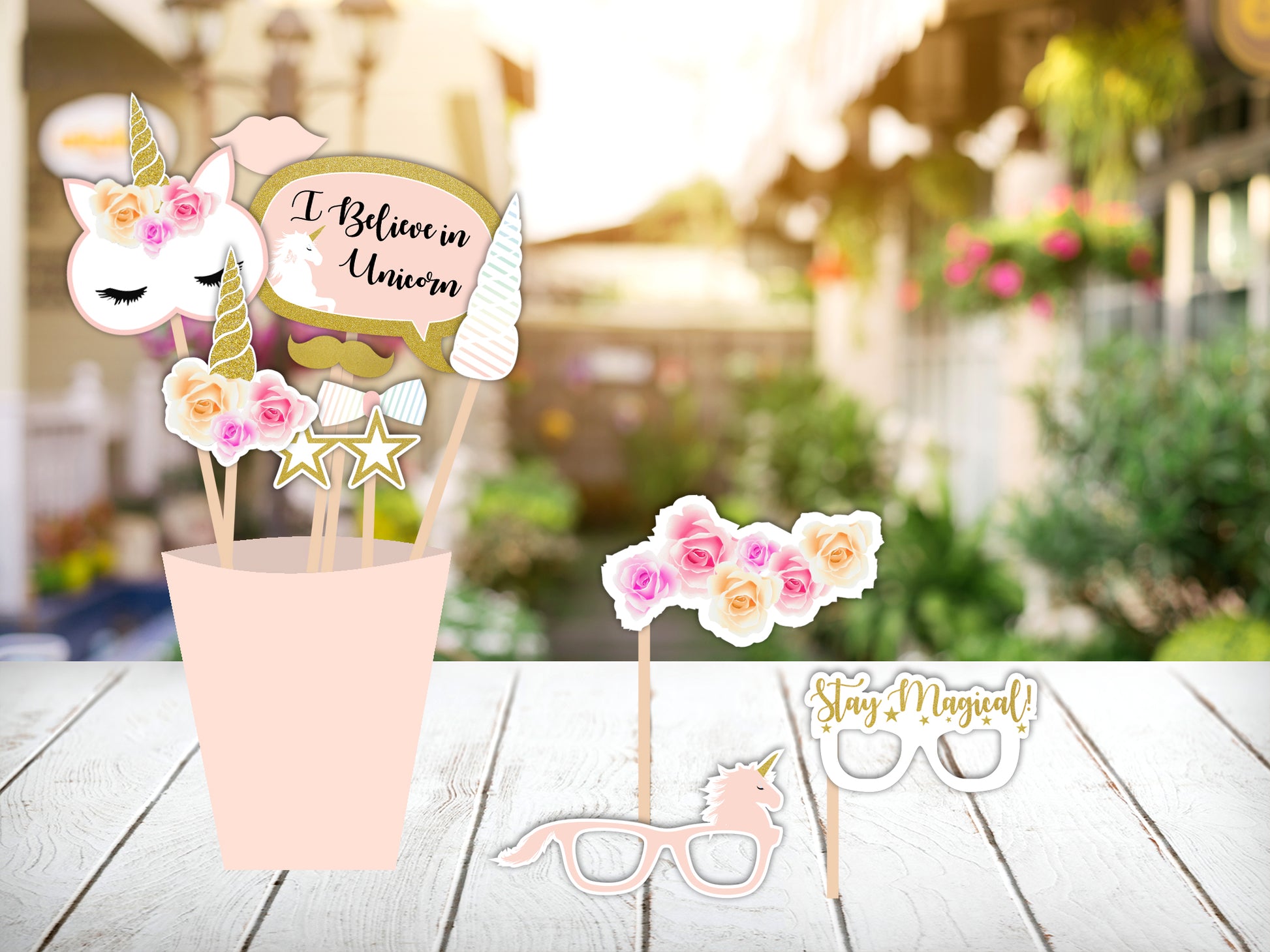 Unicorn Theme Birthday Party Photo Booth Props Kit