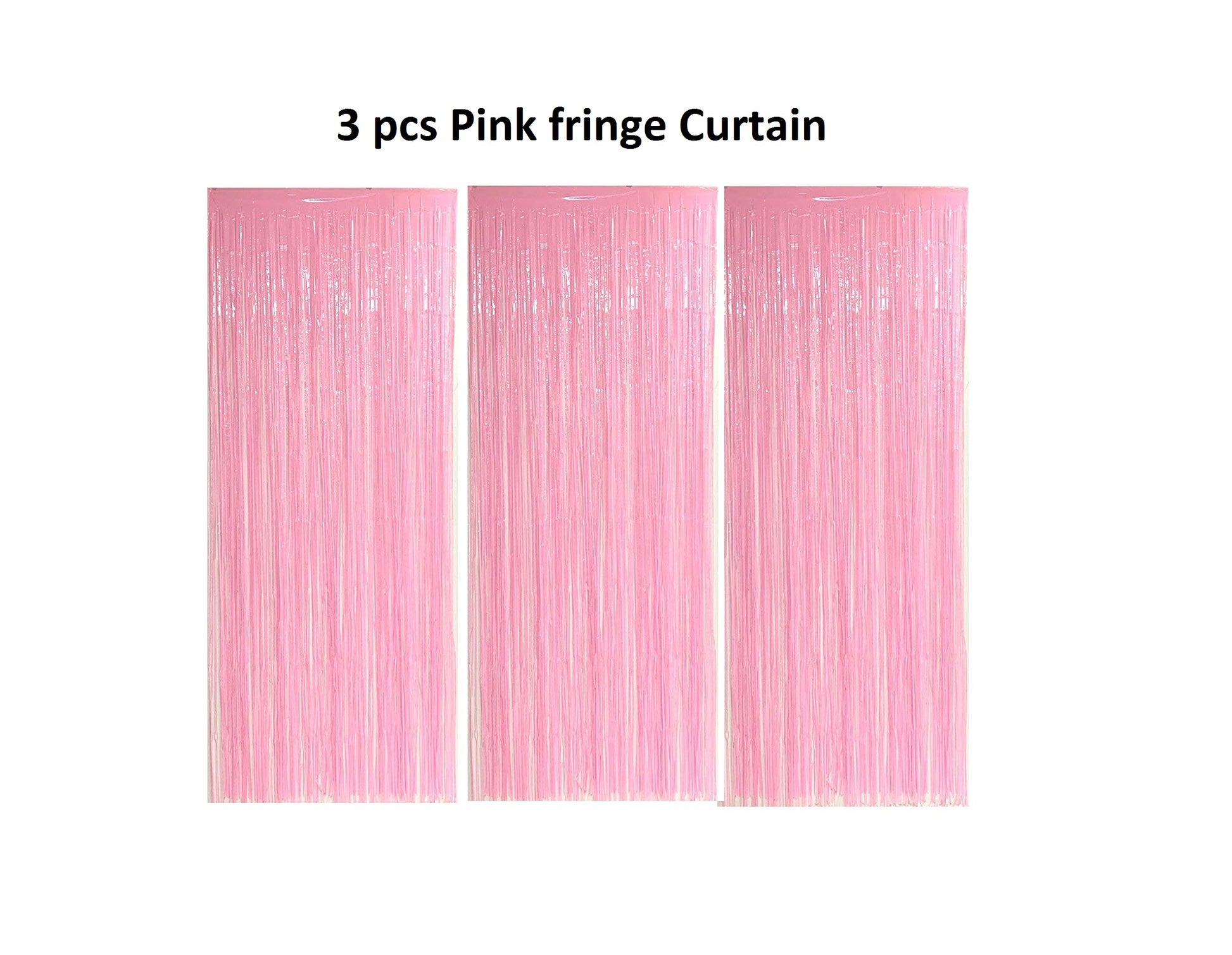 - Package Includes: 3 Pcs pink Fringe curtains; 1 birthday backdrop- Size 4 by 4 ft, 60 pc latex balloons (Pastel Green+Purple+Pink+White - 15 each); 5 pc Gold Confetti , 2 Purple Star and 2 Pink Star 18"inch