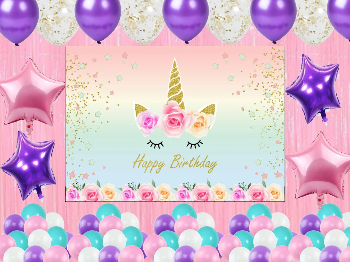 Unicorn Theme Birthday Party Decoration Kit with Backdrop & Balloons