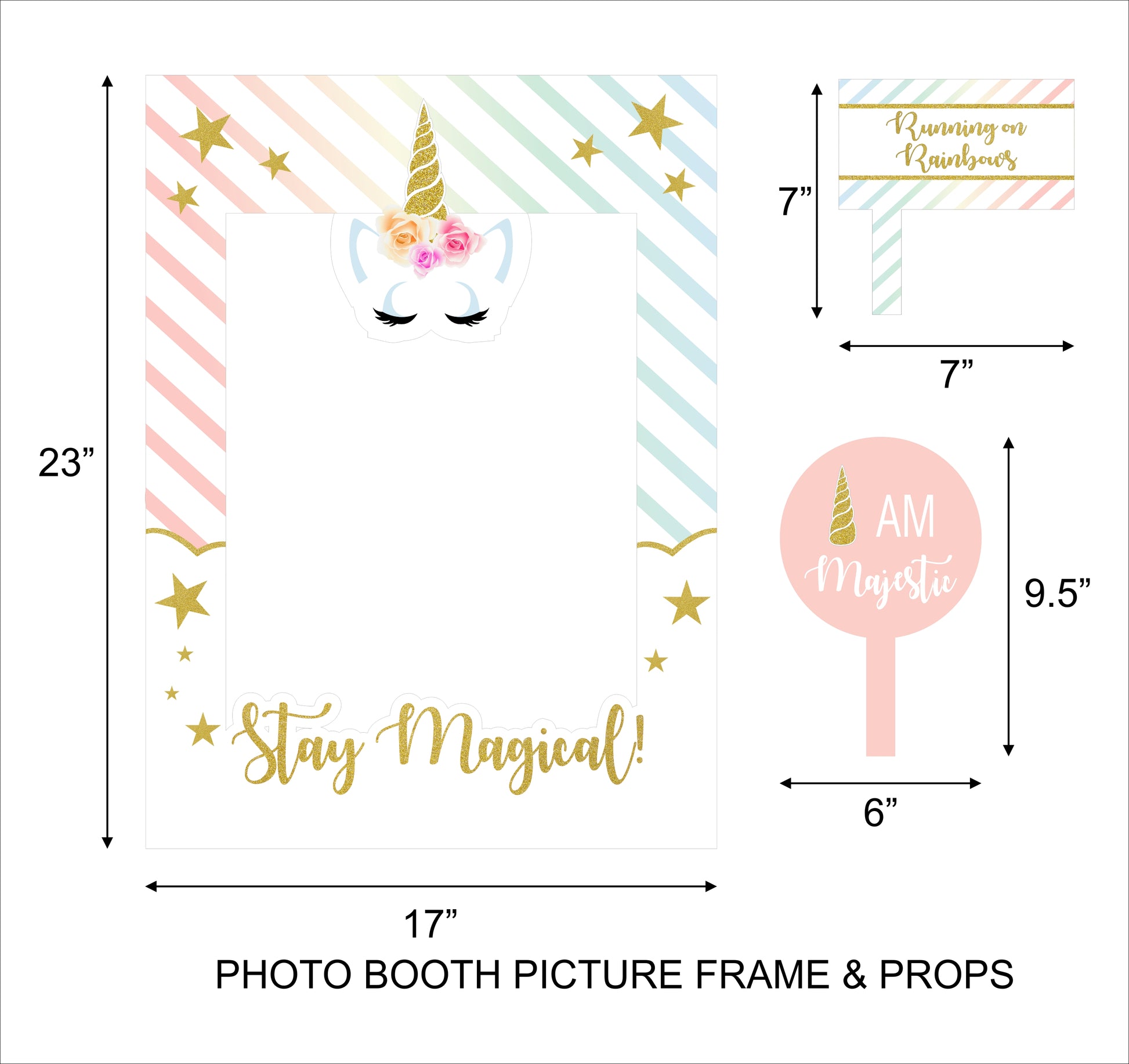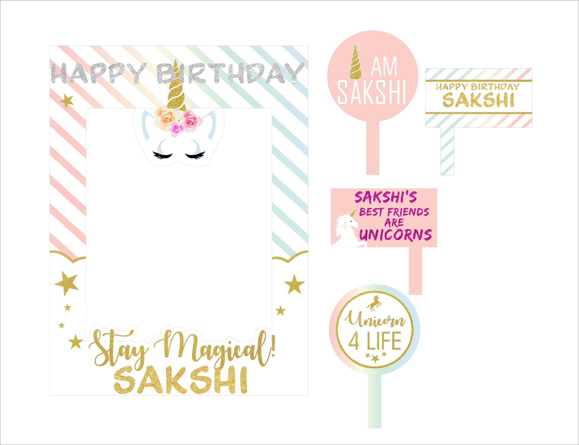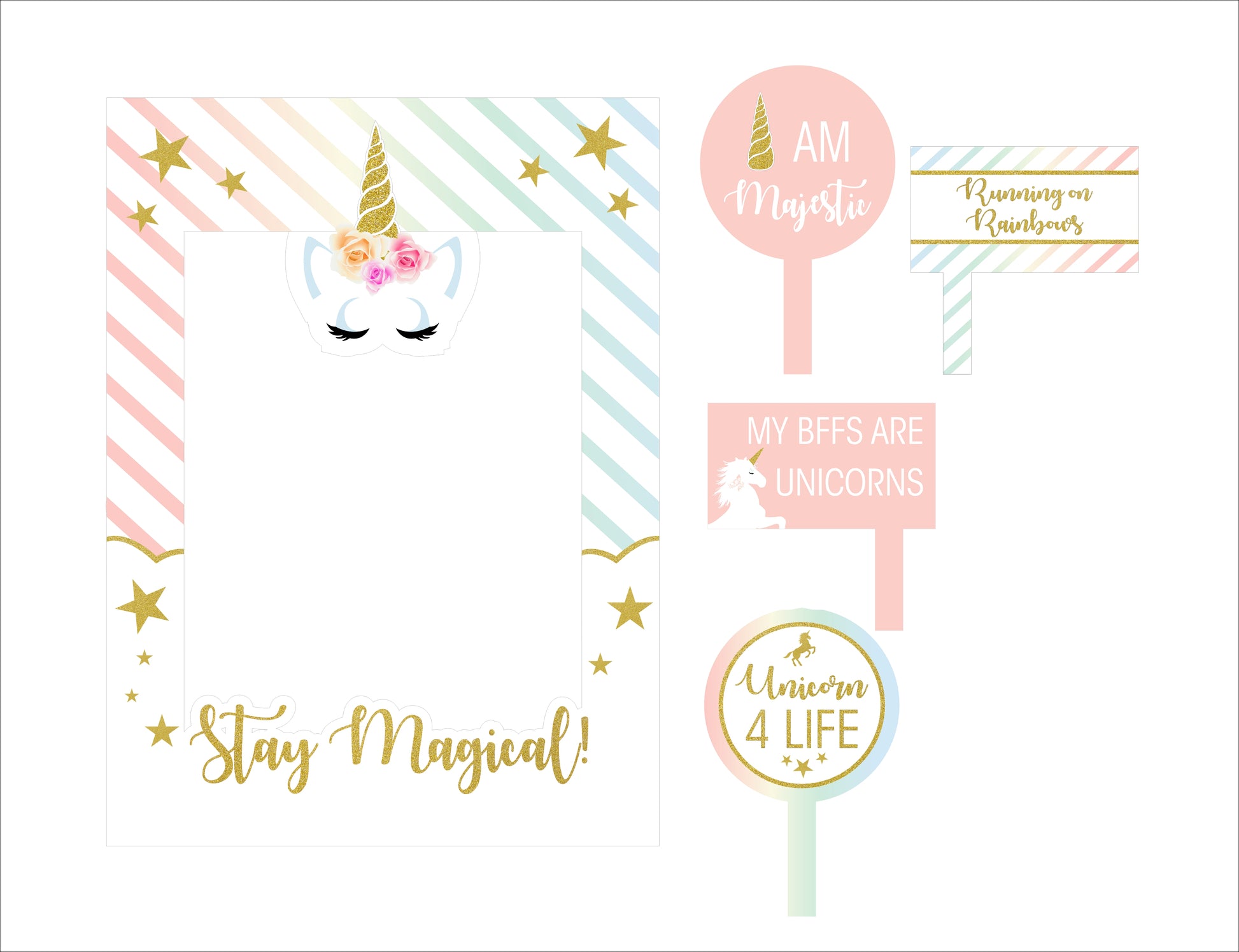 Unicorn Theme Birthday Party Selfie Photo Booth Frame & Props