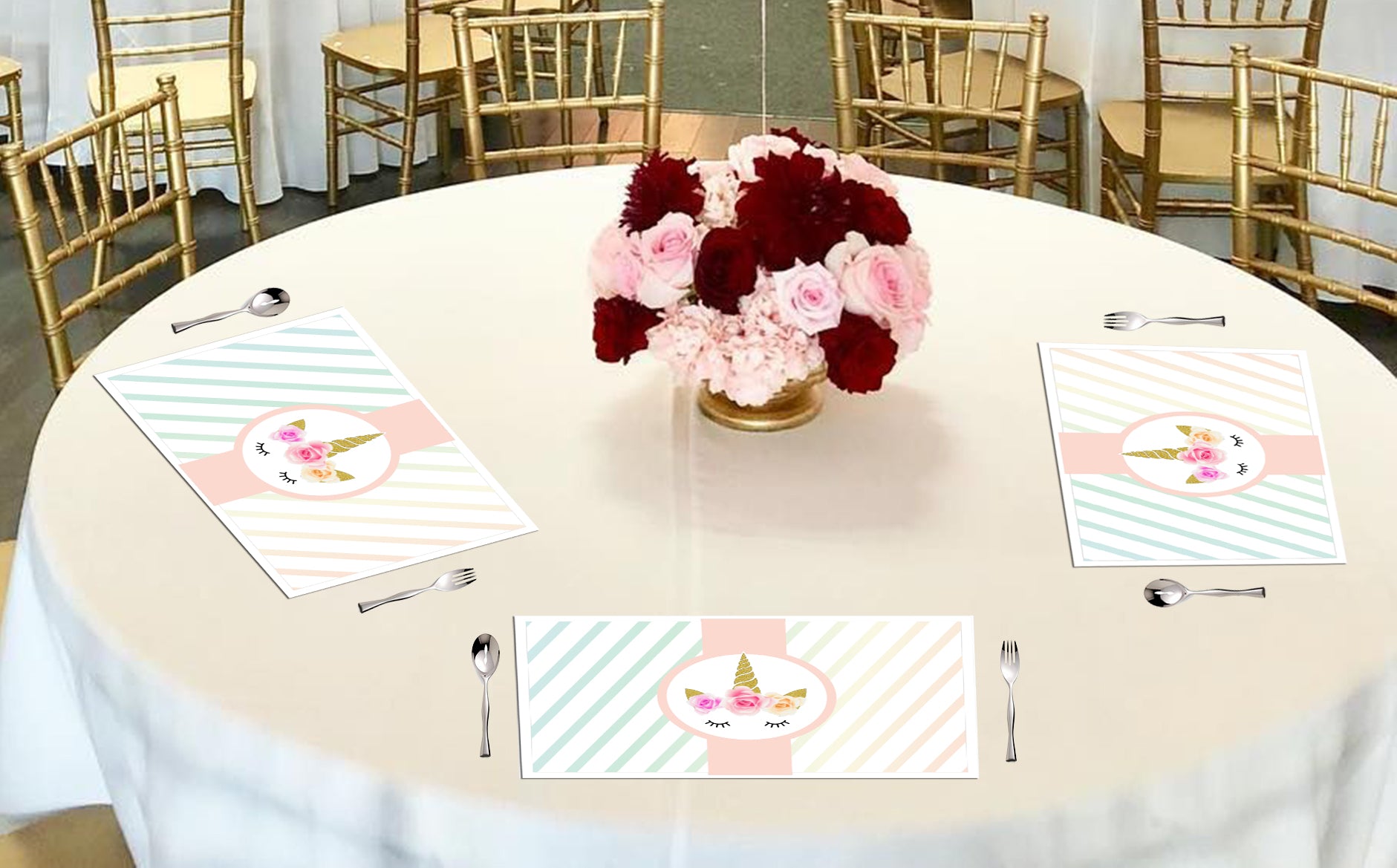 Unicorn theme Birthday Party table mats will delight all of your guests. Add these themed table mats to make a remarkable table setting.