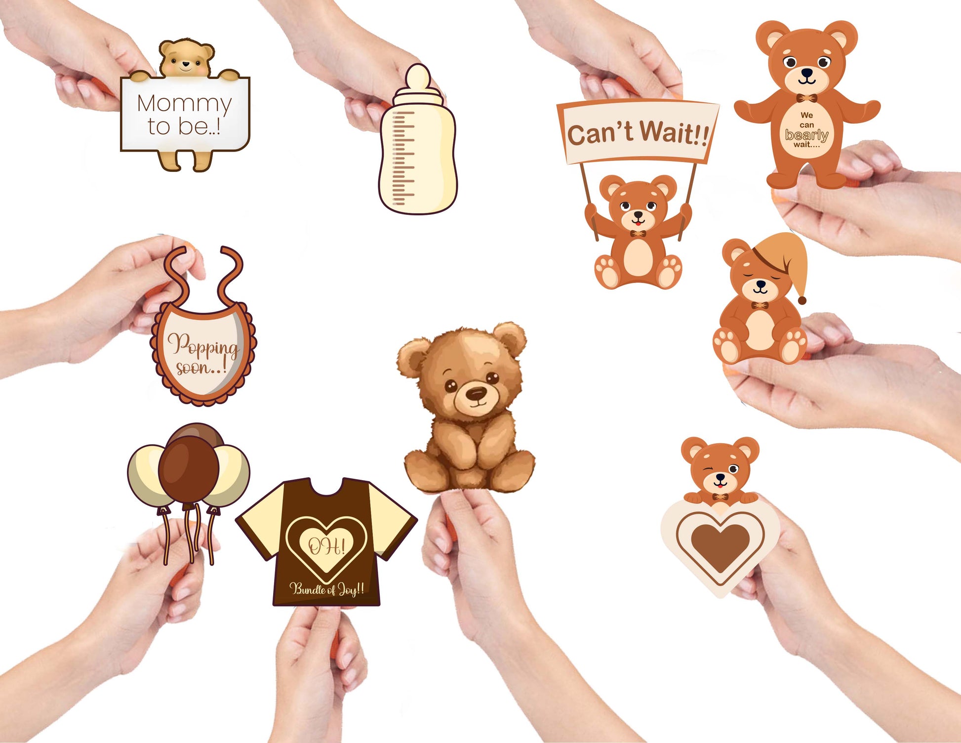 We Can Bearly Wait prop pack accompanies 10 pieces . Just add the included sticks to each piece, and show nearby a pleasant photograph corner setting. Your loved ones will adore the fun photographs they will make with this astonishing 10 piece