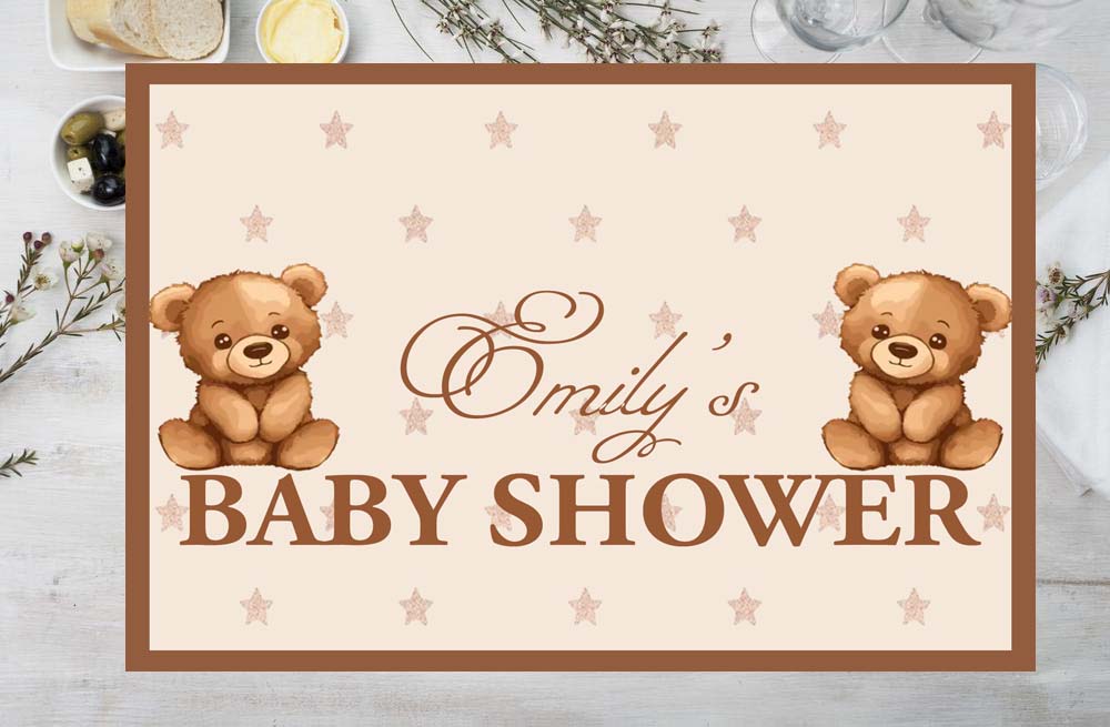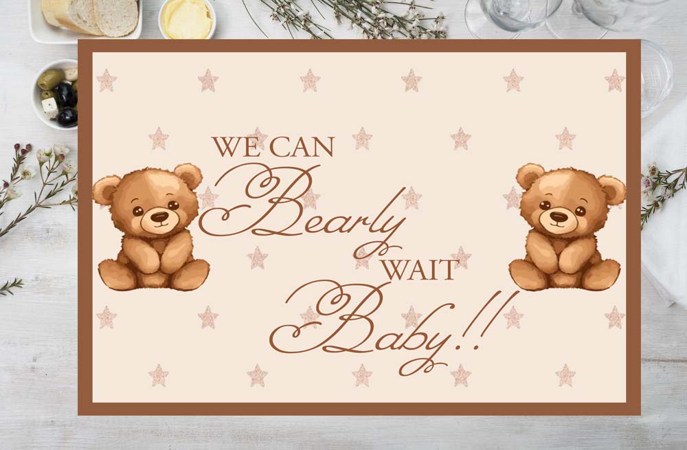 - We Can Bearly Wait party table mats will delight all of your guests. Add these themed table mats to make a remarkable table setting.