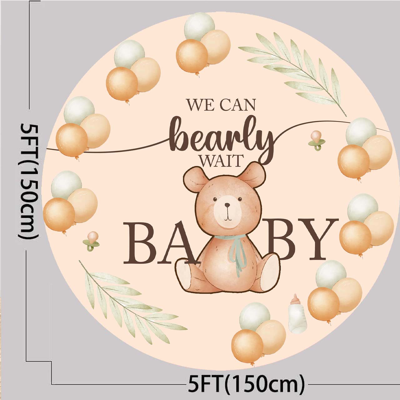 We Can Bearly Wait Baby Shower Theme Round Backdrop