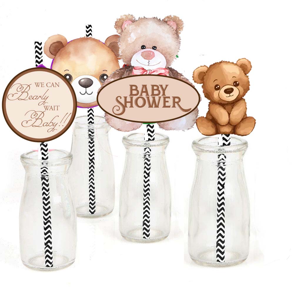 - The package includes - 24 We Can Bearly Wait paper cut-outs, 24 coordinating paper straws & a glue dot.