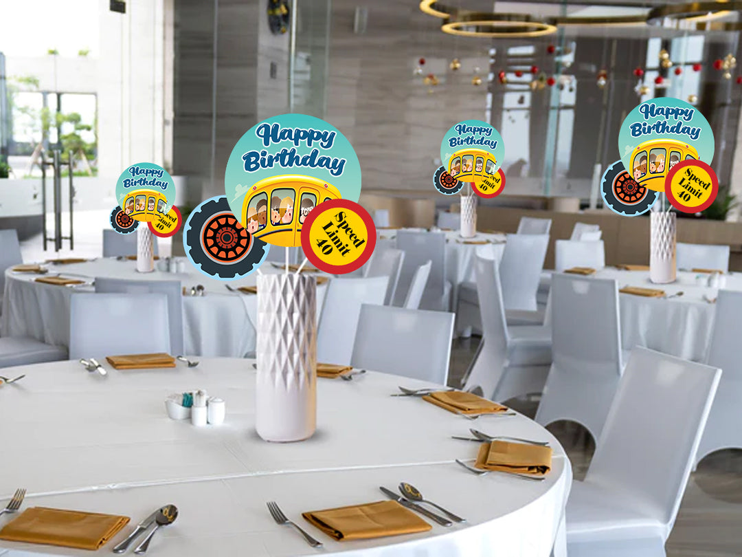 Wheels on the Bus Theme Birthday Party Table Toppers for Decoration