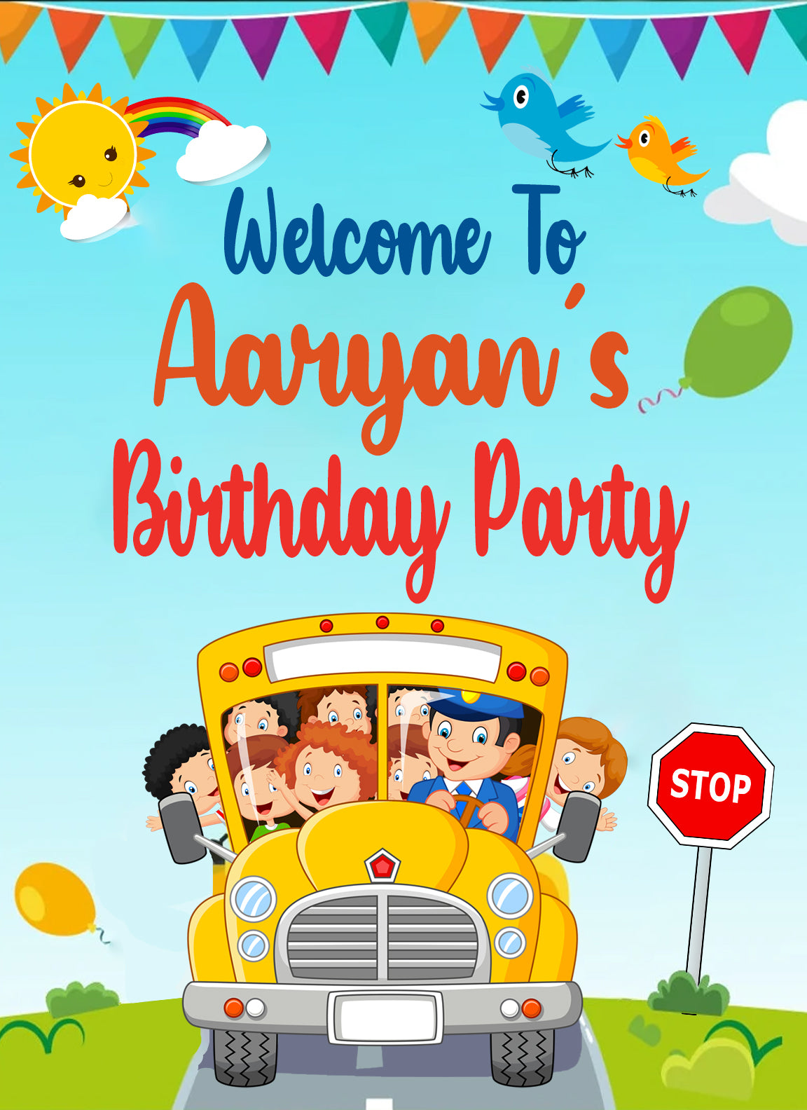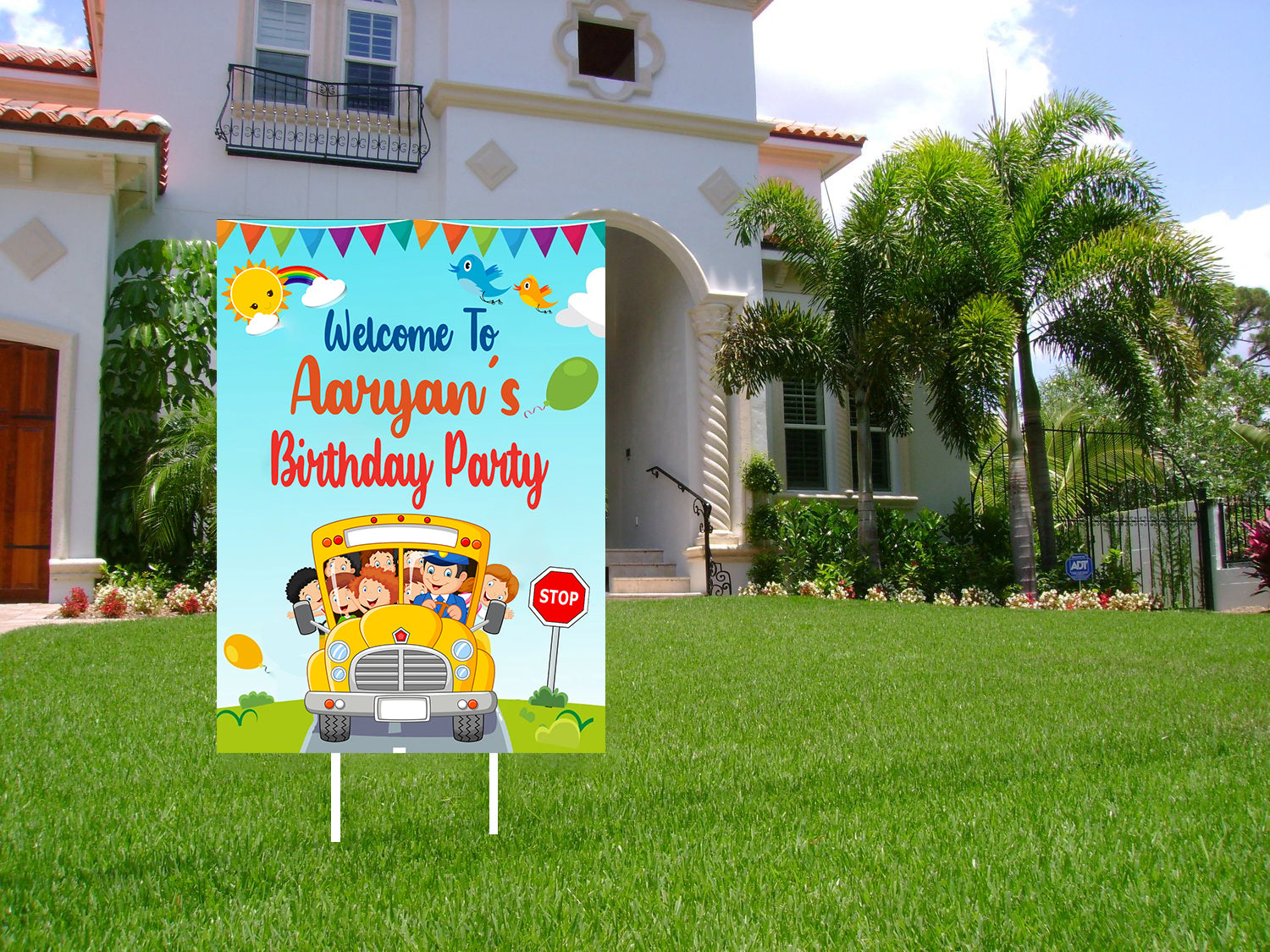 Material: - Wheels on the Bus theme welcome signboard is made of high-quality vinyl print pasted on a 3mm sun board.
