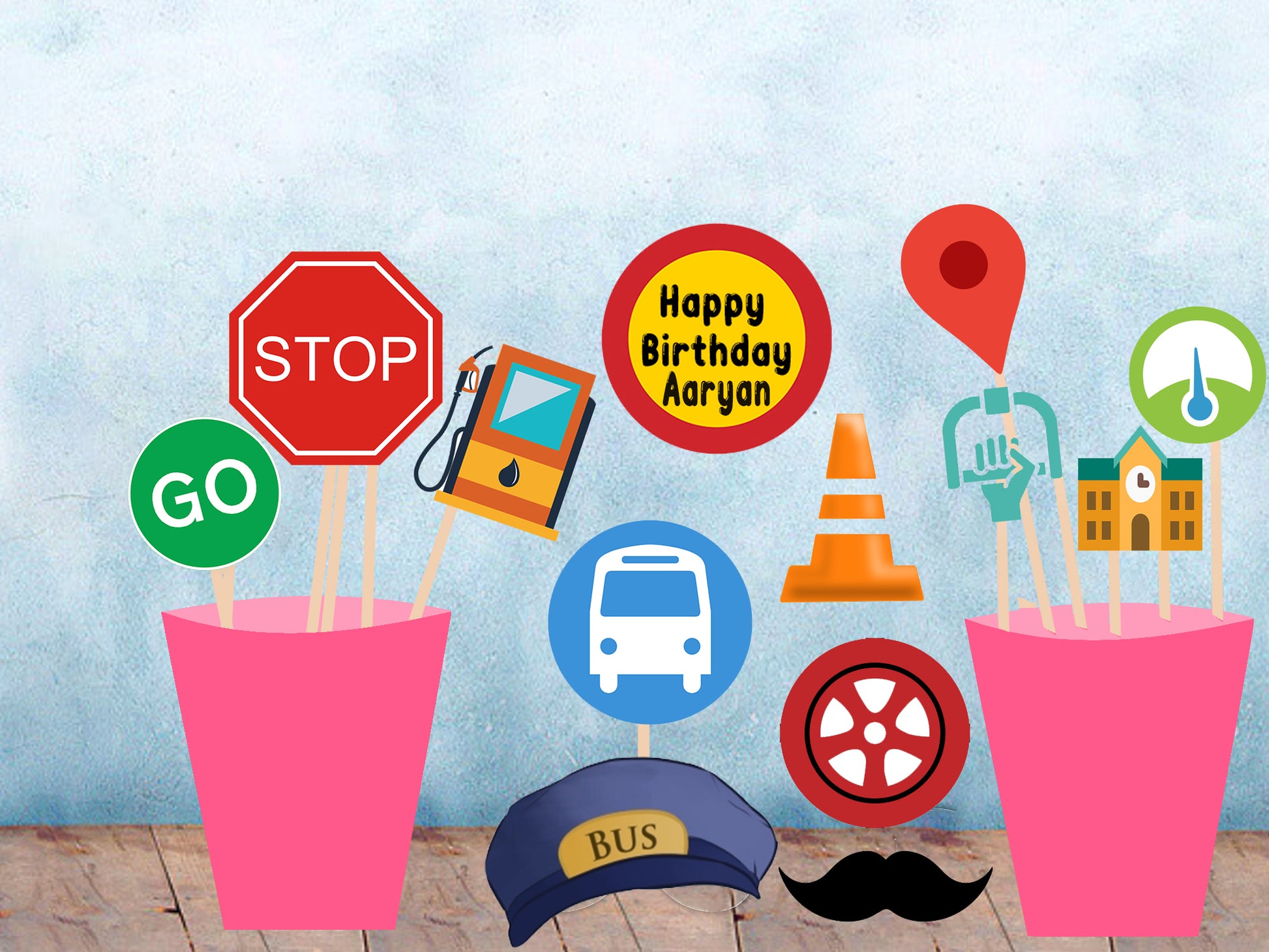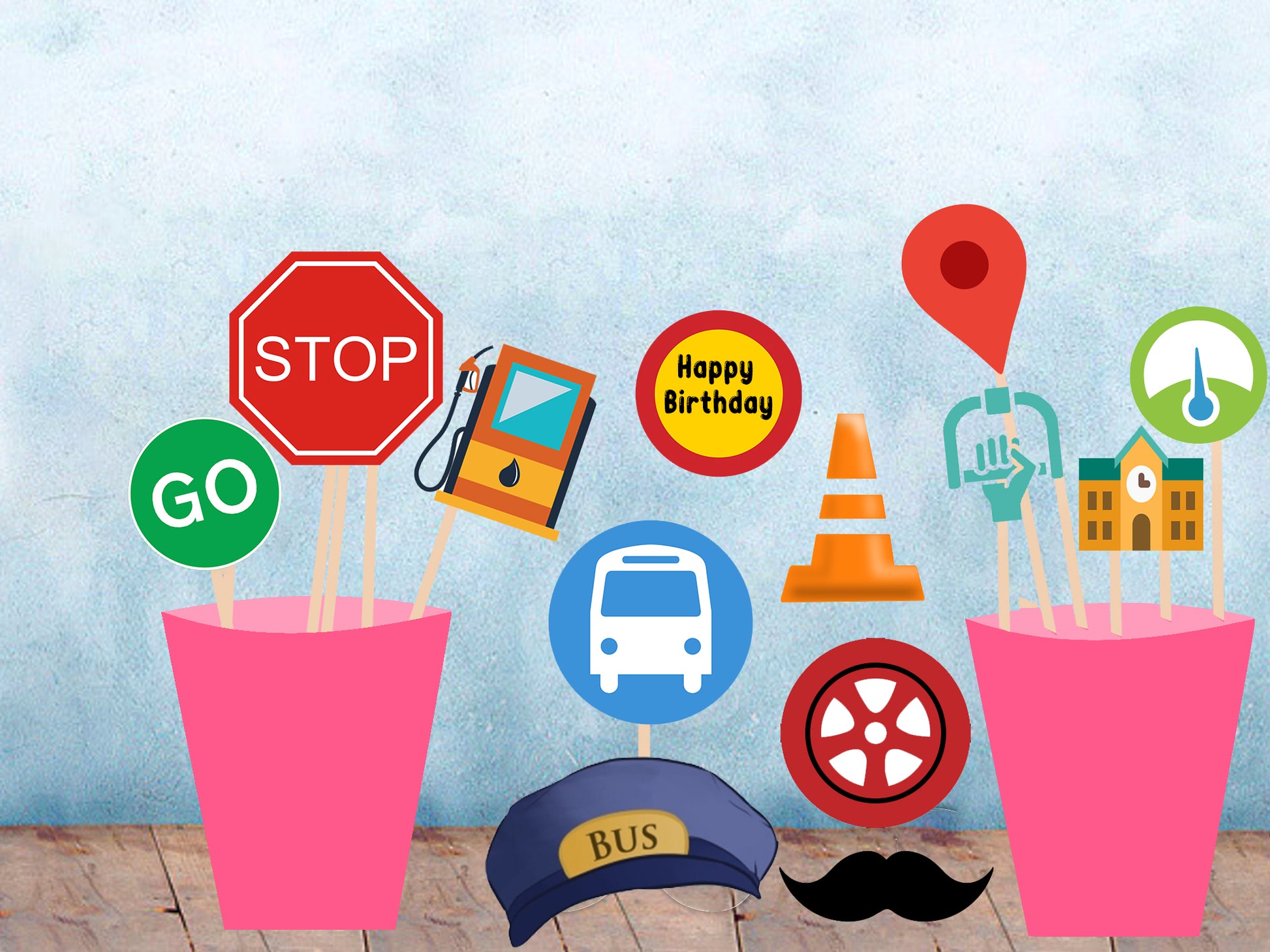 Wheels on the Bus Theme Birthday Party Photo Booth Props Kit
