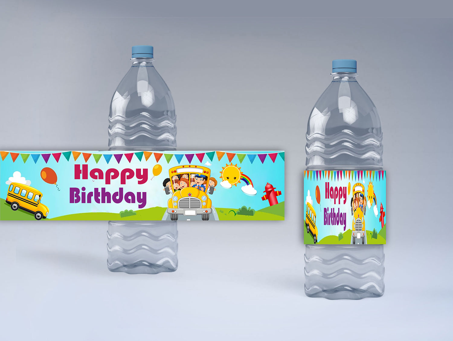 Wheels on the Bus Theme Birthday Party Water Bottle Labels