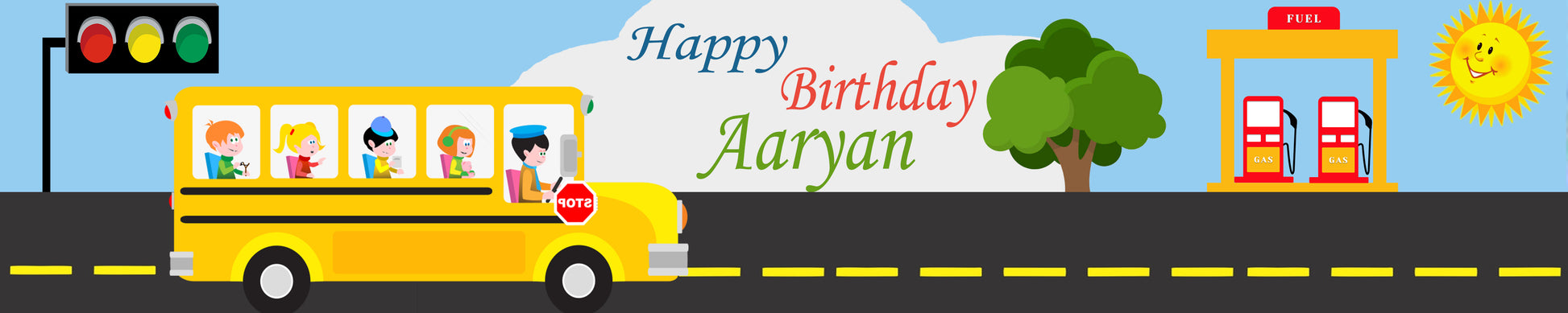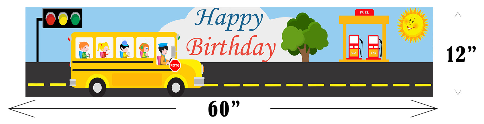 Wheels on the Bus Theme Birthday Long Banner for Decoration