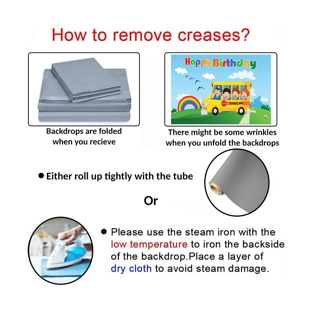 Size & Package: (Width) x (Height) 1pc Wheels on the Bus Party Backdrop. To facilitate transport and packaging, items are sent folded.