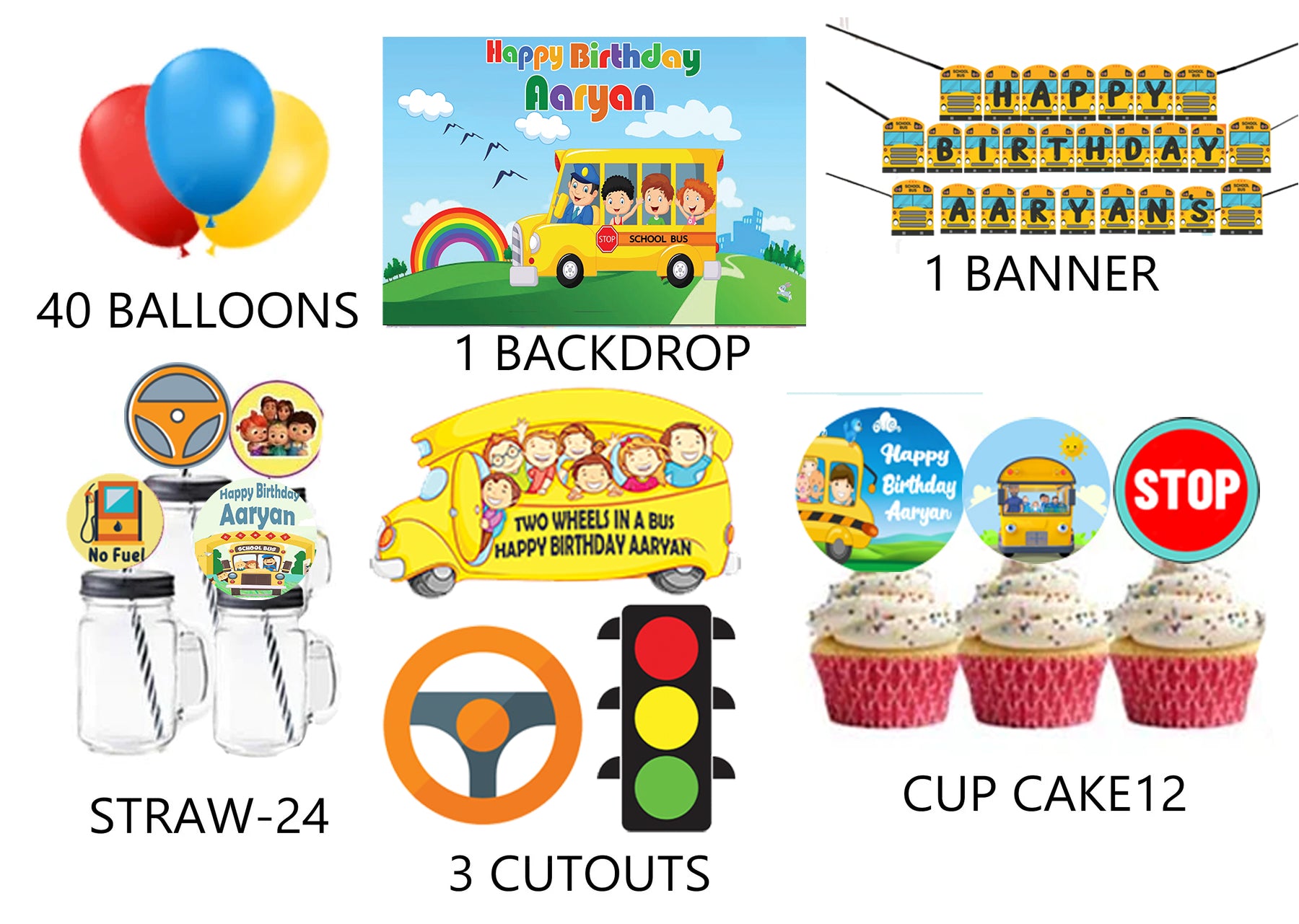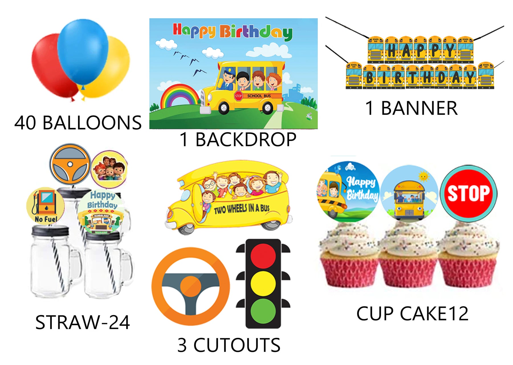 Wheels on the Bus Theme Birthday Party Combo Kit with Backdrop & Decorations