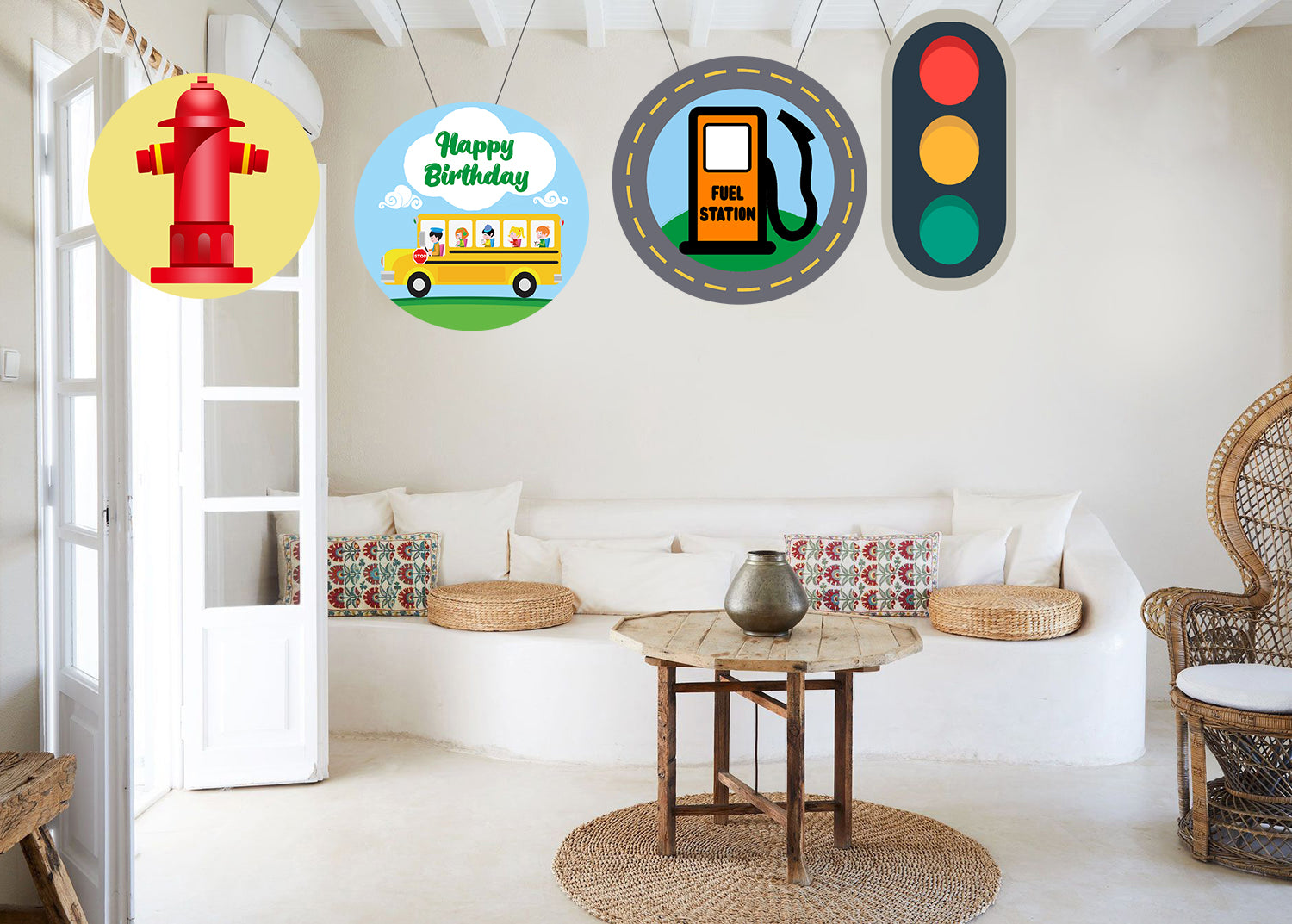- Wheels on the Bus Theme hangings will add a beautiful touch to your kid's birthday party.