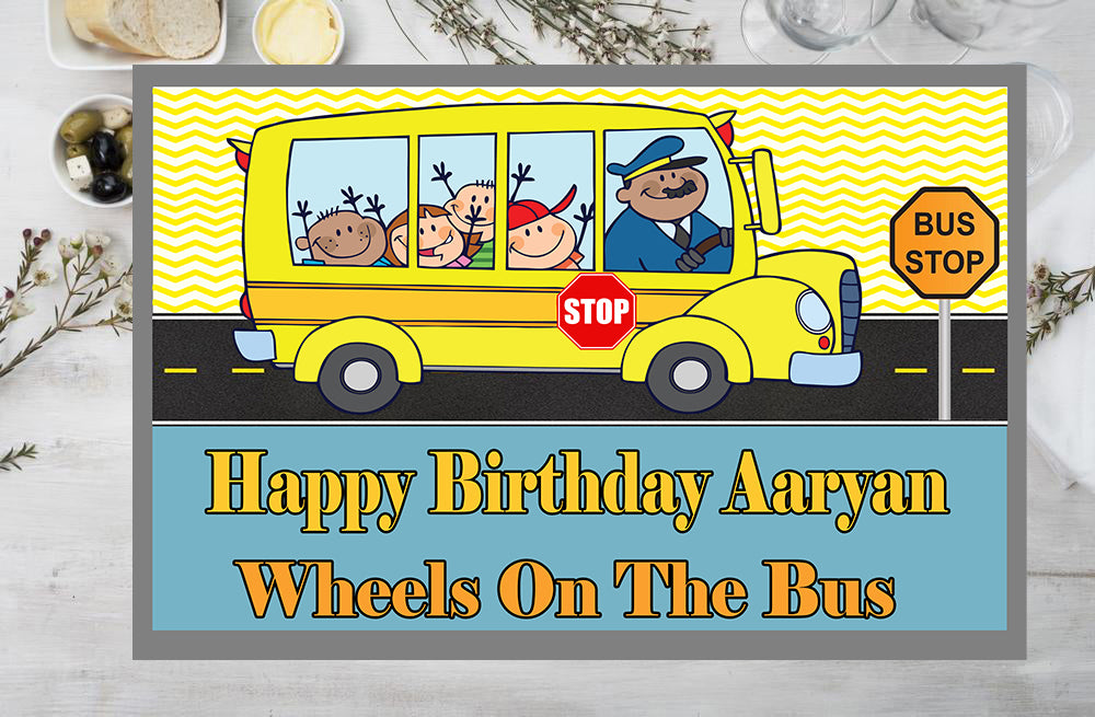 Wheels on the Bus theme birthday party table mats will delight all of your guests. Add these themed table mats to make a remarkable table setting.