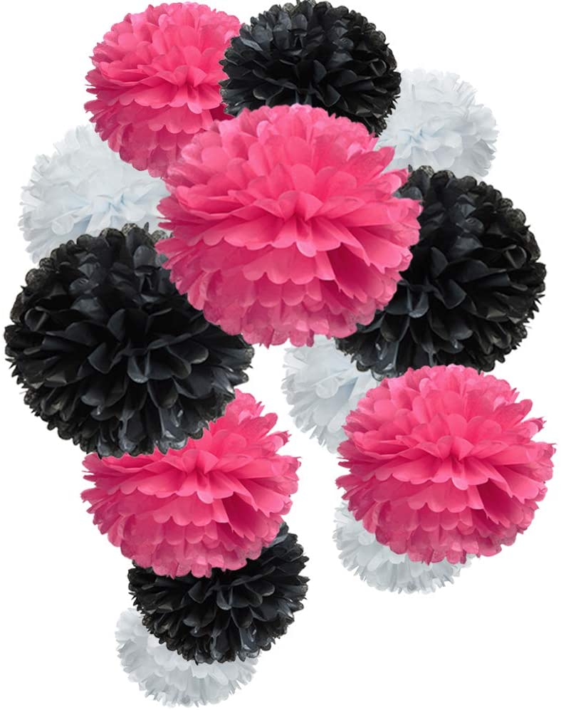White, Pink And Black Pom Pom Flower Decoration For Birthday Parties, Anniversary Party & Baby Shower