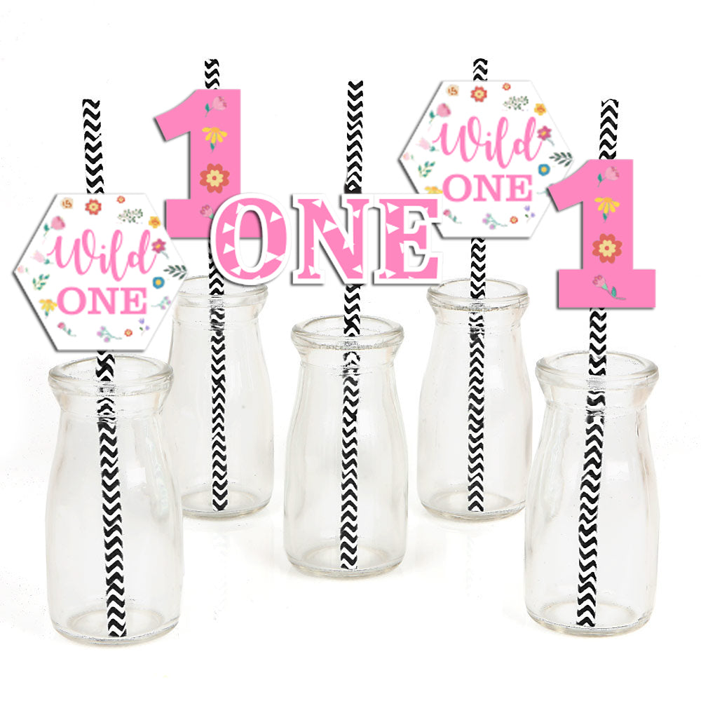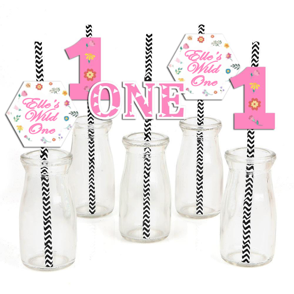 - The package includes - 24 First Birthday theme paper cut-outs, 24 coordinating paper straws & a glue dot.
