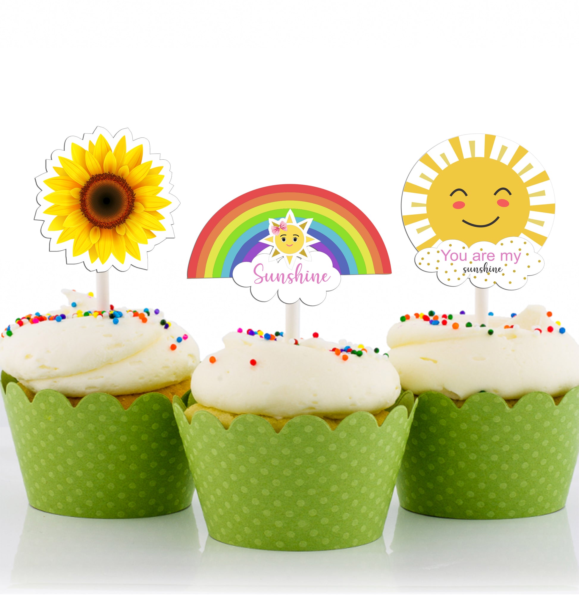 Sunshine Theme Birthday Party Cupcake Toppers for Decoration