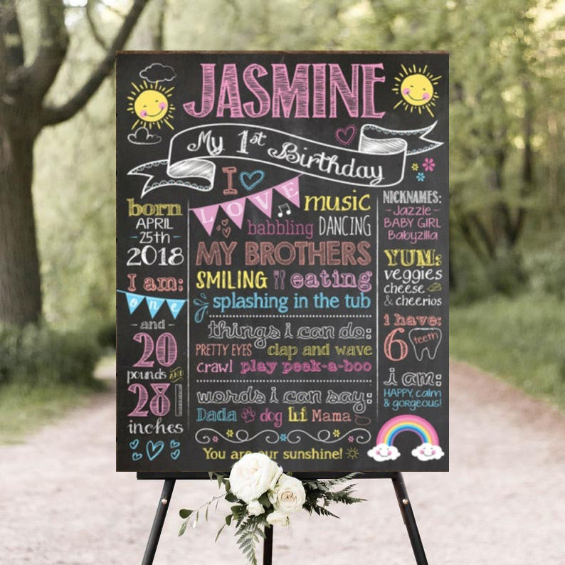 Material : Birthday chalkboard is made of high quality vinyl print material and pasted on 3mm sun board.