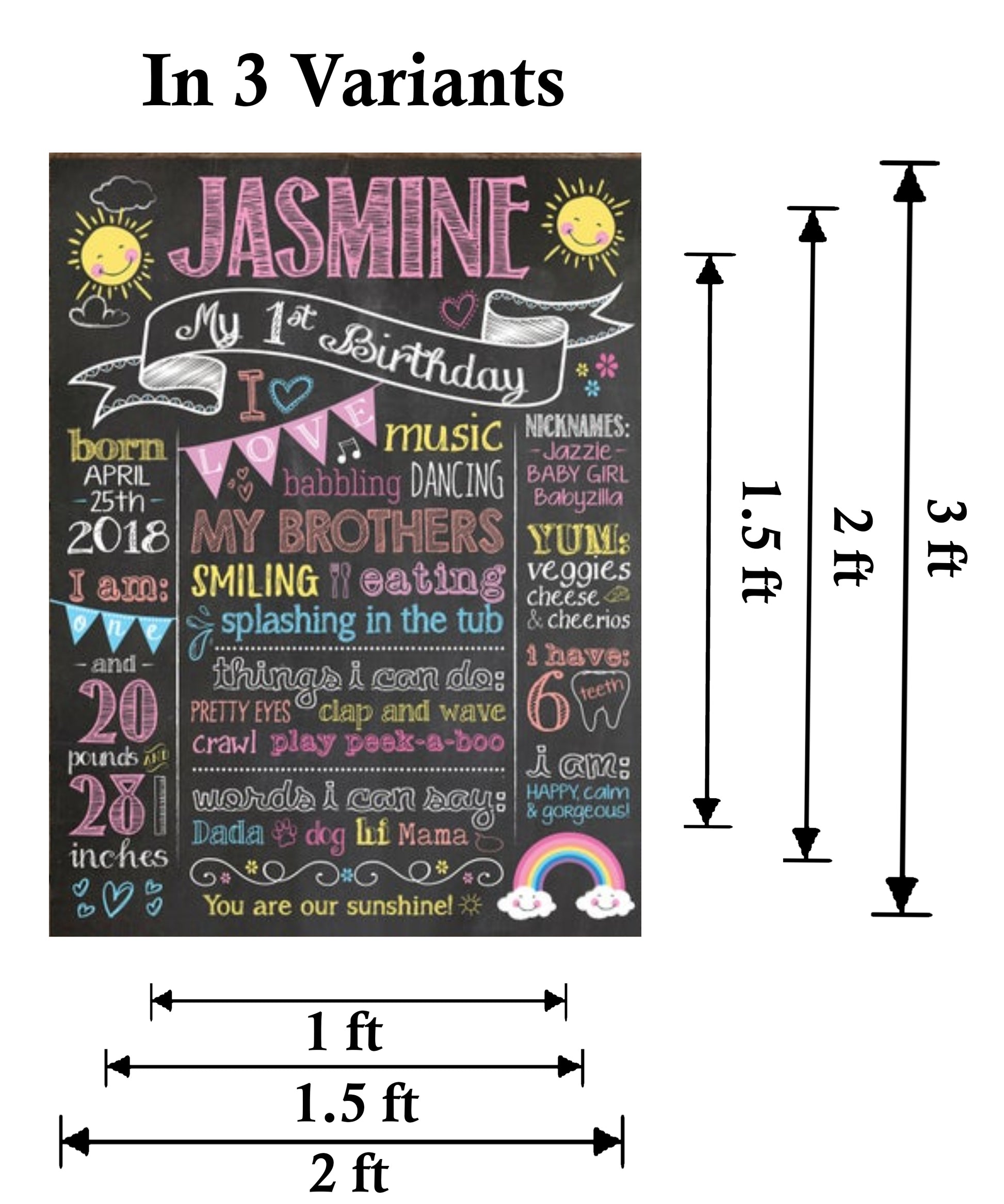 Perfect Size : The birthday chalkboard sign comes in 2 variants which is the perfect to hold and customize child details. Enough space to write details like name, age, weight, height, favorite toys and food. Choose size according to your requirements.